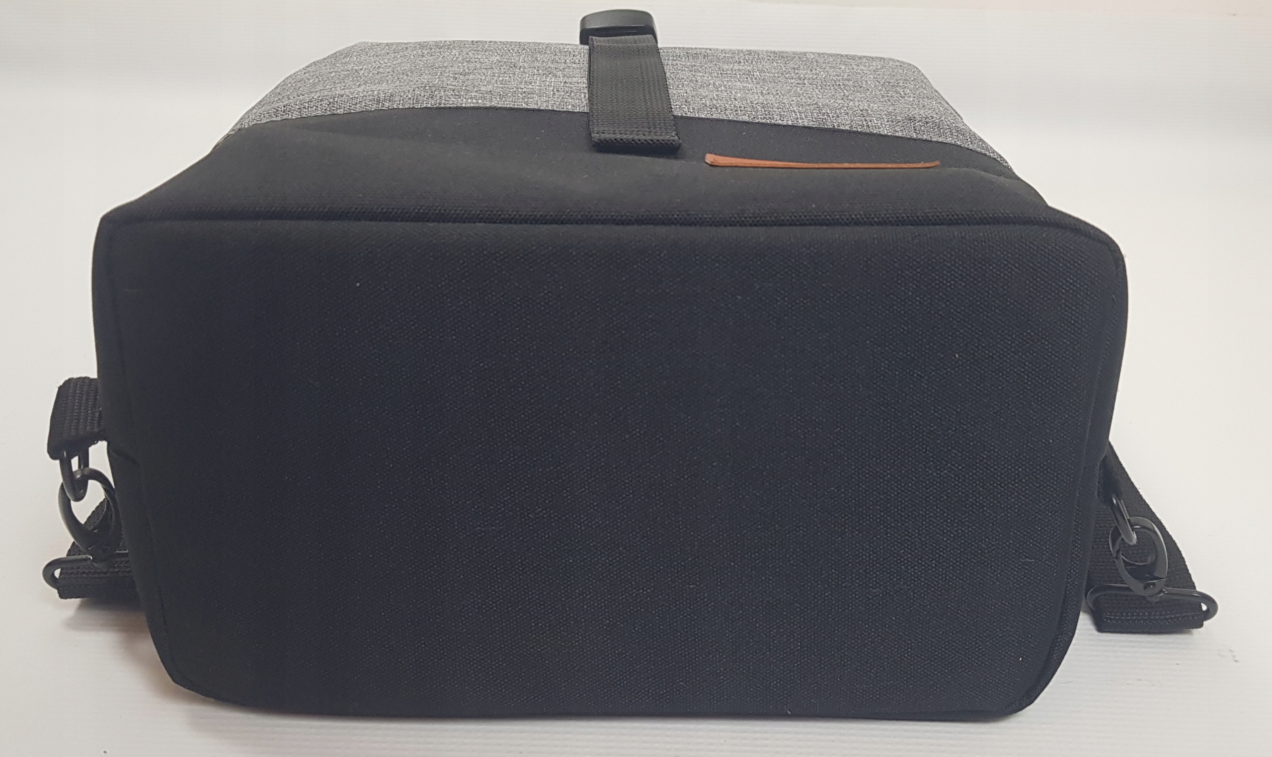 Застегивается на молнию и регулируется по высоте. Благодаря ремешку с пряжкой его можно свернуть сверху, что позволит отрегулировать его вместимость в зависимости от текущего момента.