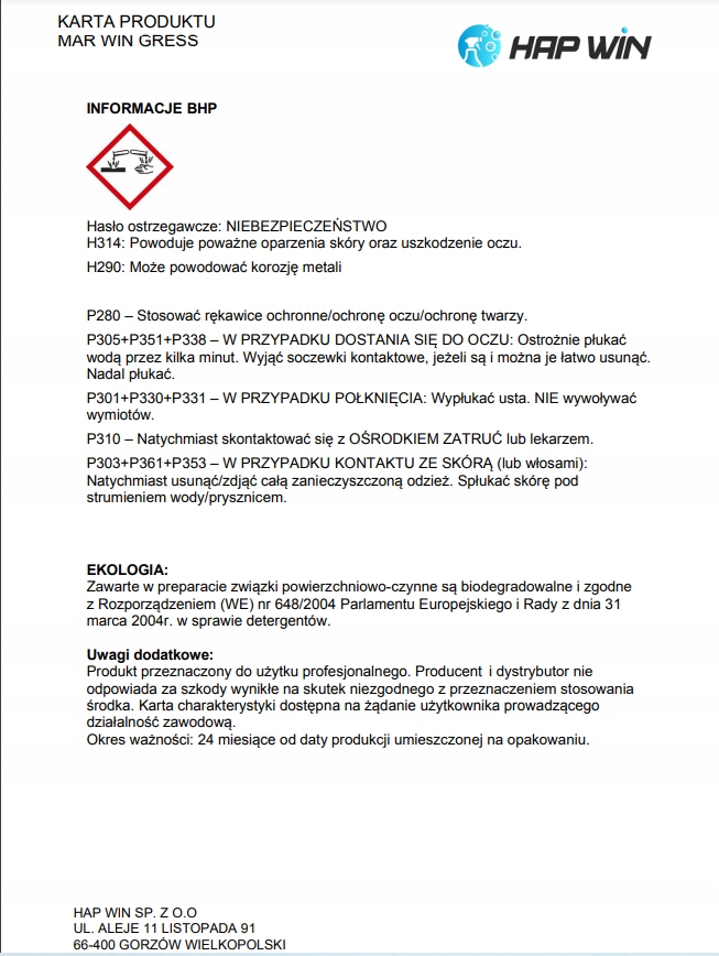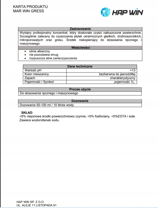 HAP WIN PROFESSIONAL КОНЦЕНТРАТ ДЛЯ ЧИСТКИ ПОЛОВ MAR WIN GRESS 1л
