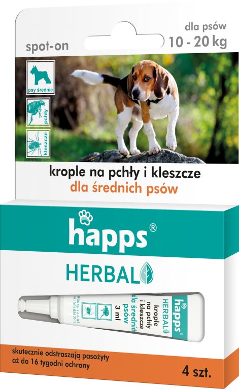 Волосы животного и его окружение, использующие Happs, соответственно, шампунь для блох и Happs Happs для блох и клещей (распылите логово, ковры и мебель для обивчиков), а затем регулярно нанести Happs Herbals, чтобы защитить от следующего инновации паразитов. Животное во время применения.