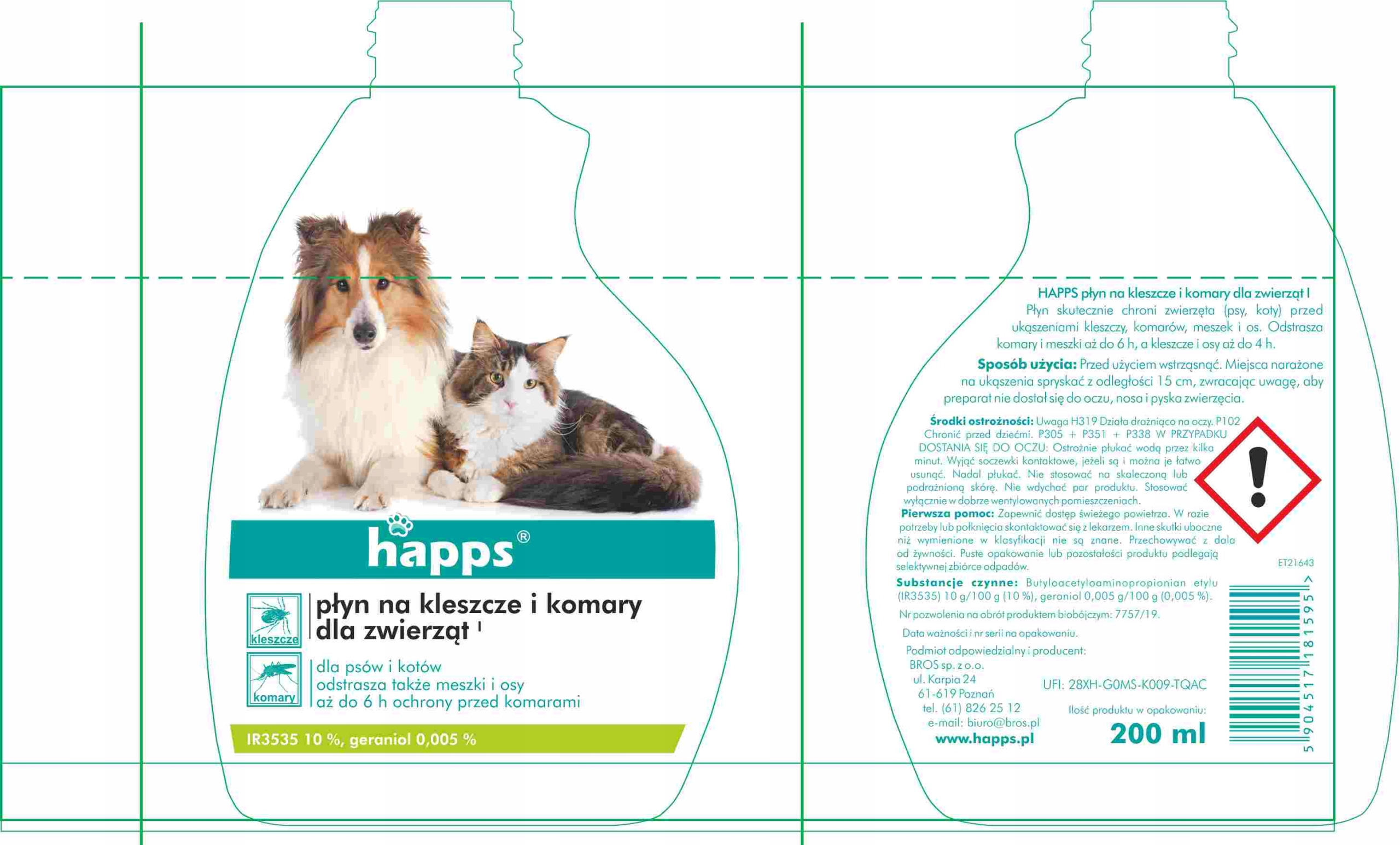 HAPPS Рідина від КЛІЩІВ, КОМАРІВ, для ТВАРИН 200 мл
