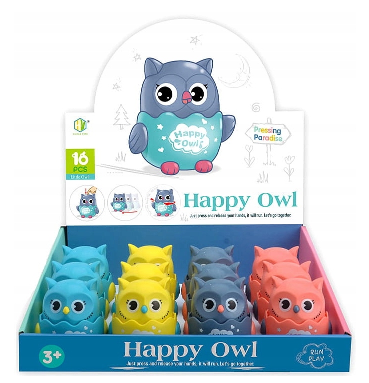 HAPPY OWL ПРЕДСТАВЛЯЕТСЯ В ЧЕТЫРЕХ ЦВЕТАХ: РОЗОВЫЙ, ЖЕЛТЫЙ, СИНИЙ И ТЕМНО-СИНИЙ — СЛУЧАЙНАЯ ДОСТАВКА.