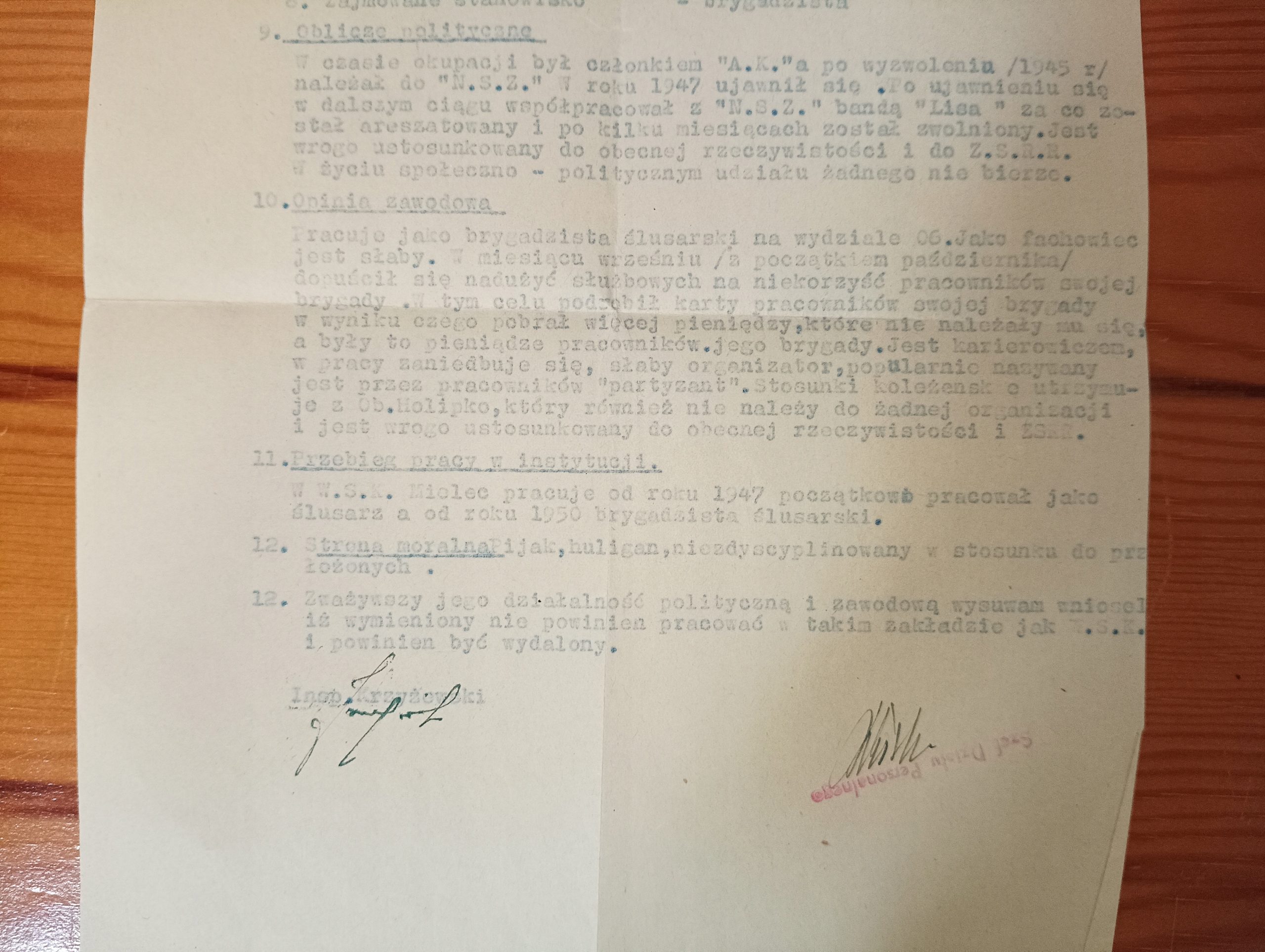 Характеристики сотрудников - Мнение - 1952 - WSK Mielec - Kiełb Tadeusz