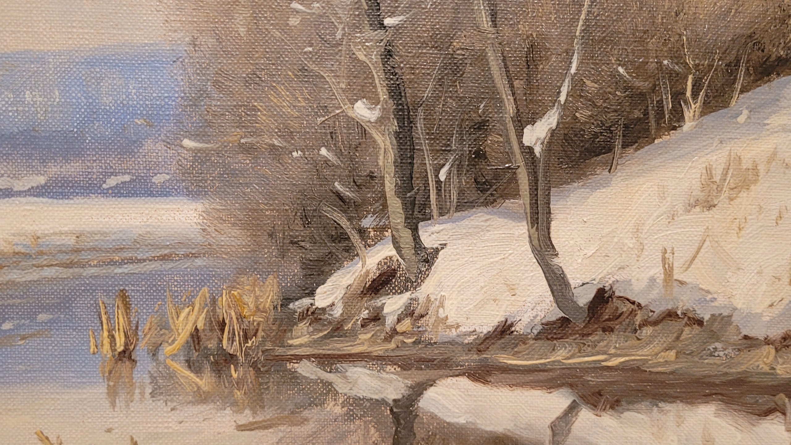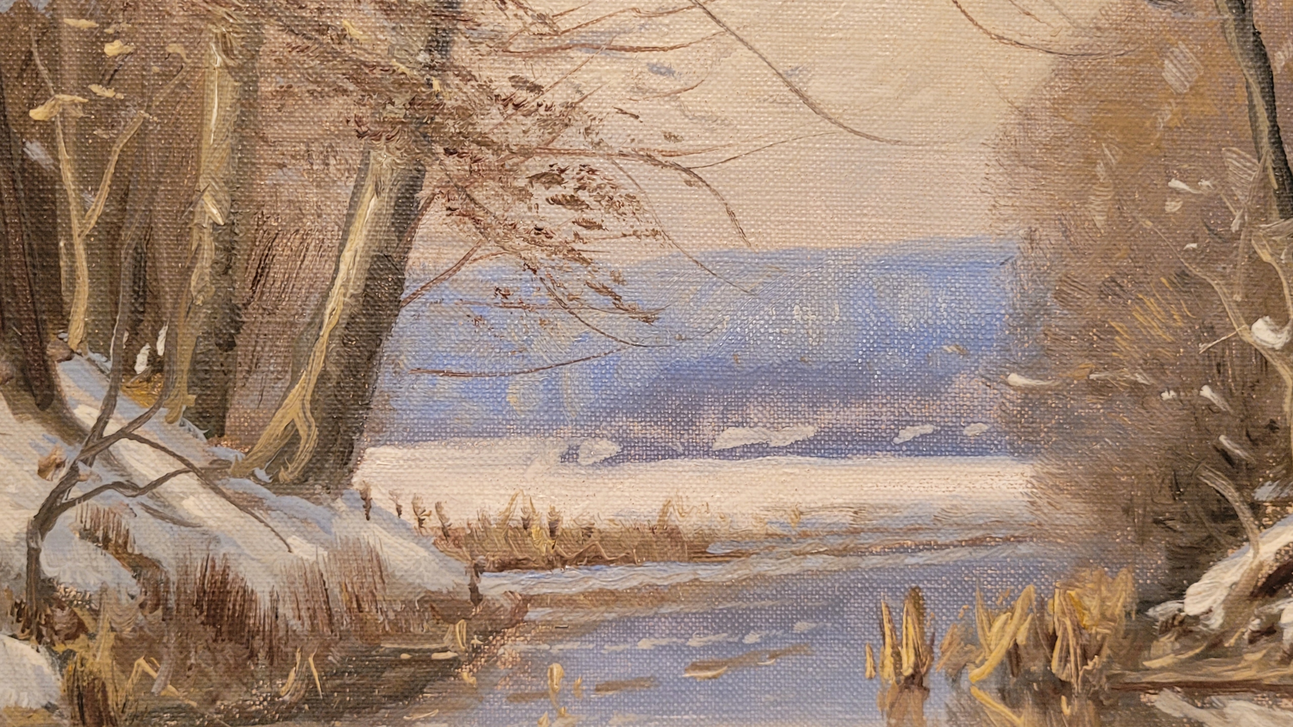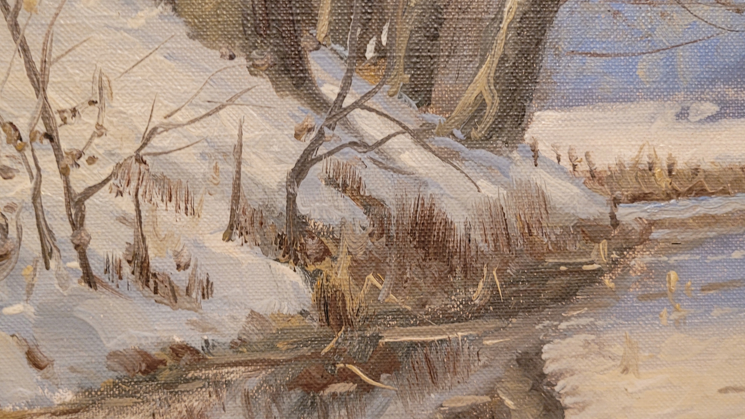 Объект продажи - красивая старая нефтяная картина "Зимний пейзаж".