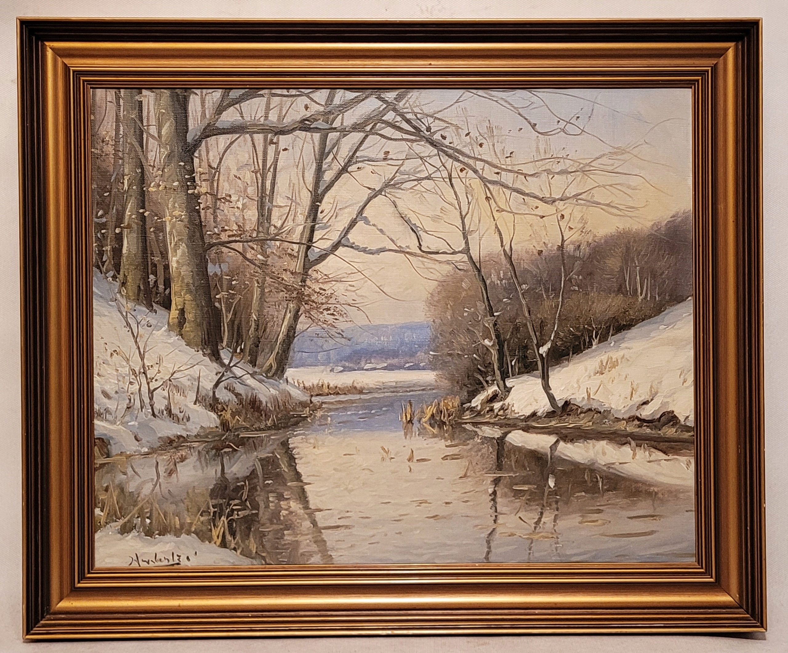 Харальд Венцель (1897 - 1961) - «Зимний пейзаж», красивая нефтяная картина.