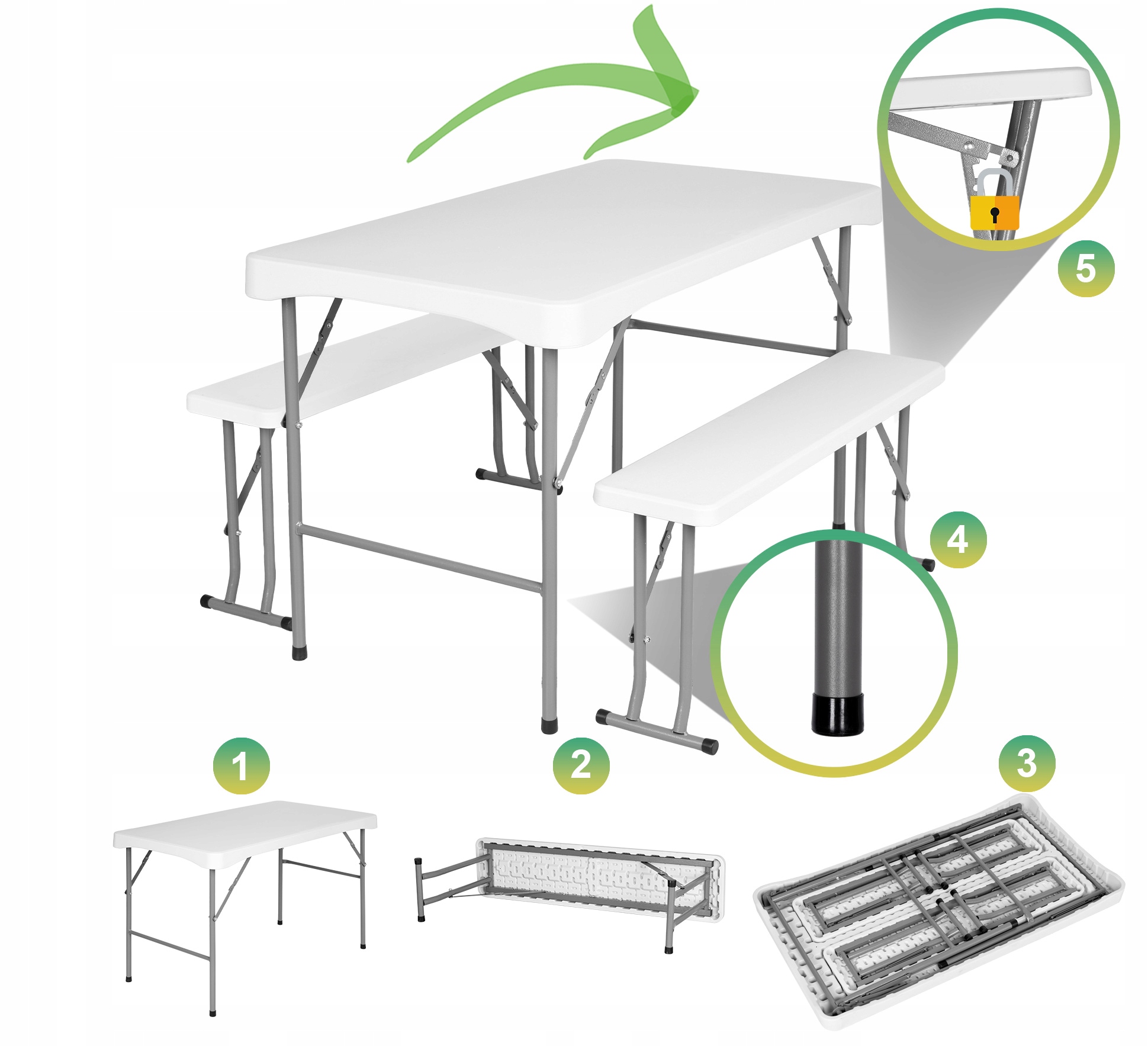 Набор общественного питания Стэнли - очень практичный, функциональный и долговечный набор мебели для общественного питания. Структура изготовлена из стали с порошкой, . Вершина и сиденья из сильного пластика HDPE. Как таблица, так и скамьи имеют специальные складные замки, благодаря тому, что они стабильны после развертывания. Набор устойчив к погодным условиям и ультрафиолетовым лучам . Благодаря уникальному дизайну вся структура скрыта в столешнике. Самый высокий качественный пластик, используемый при производстве столешницы и сидений, делает его одним из самых сильных предлагаемых на польском рынке. Комплексный набор для кейтеринга с универсальным использованием. Верх успешно выполнят функцию питания, коммерческого или садового стола. Толстый верхний будет работать в всех условиях соответственно. Его современный внешний вид , безусловно, будет сочетаться с любым интерьером.