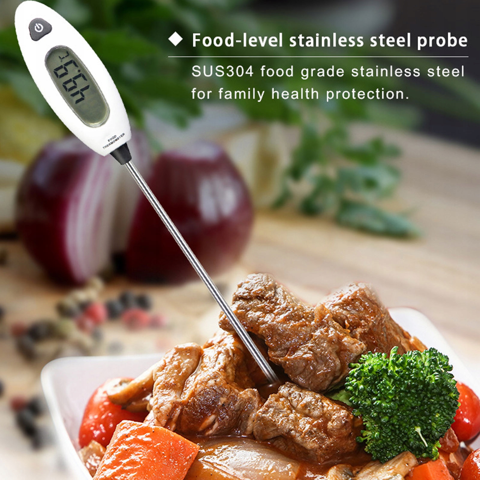 1. Безопасный материал: это термометр из пищевой нержавеющей стали, обеспечивающий безопасность вашей семьи, очень практичный