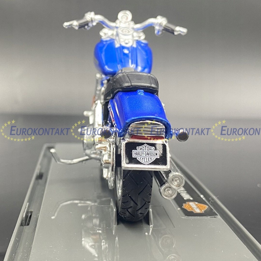 Модель мотоцикла Harley-Davidson отличается вниманием к деталям. Имеет подвижные элементы: подставку, колеса, руль, заднюю подвеску. Съемная подставка с логотипом HD и номером модели.