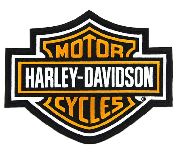 вышитый патч с наиболее узнаваемым логотипом, Classic Harley-Davidson® Bar & Shield в Orange. Он имеет характерную эмблему в форме щита и толстая черная граница.