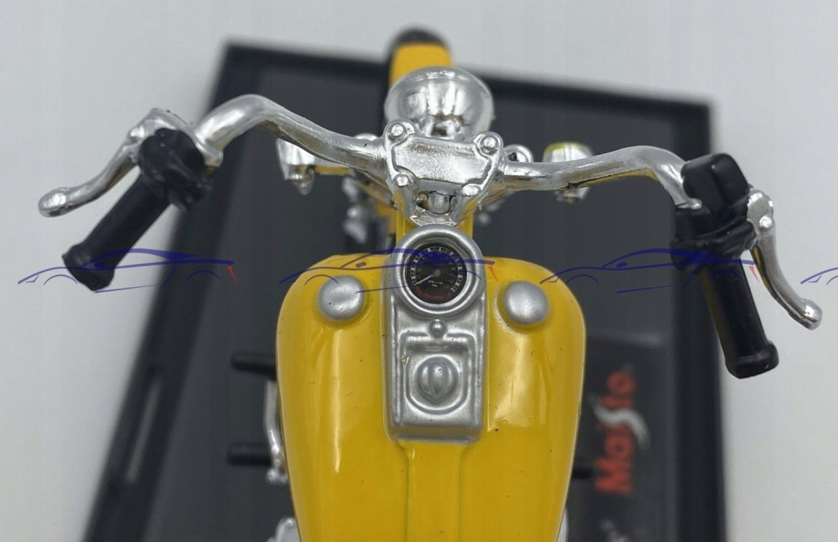 Модель мотоцикла Harley-Davidson отличается вниманием к деталям. Имеет подвижные элементы: подставку, колеса, руль, заднюю подвеску. Съемная подставка с логотипом HD и номером модели.