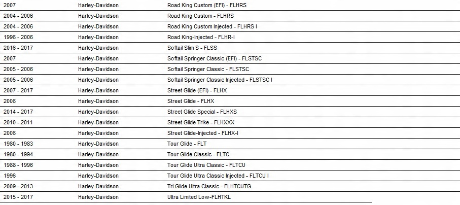 Street Glide FLHX/S, Street Glide Trike FLHXXX, Tour Glide FLT/C/CU, Tri Glide Ultra Classic FLHTCUTG,