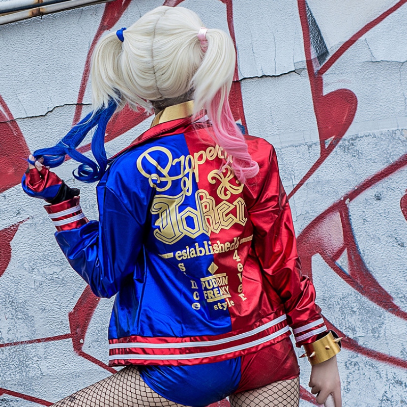 - Наряд имитирован по подобию персонажа Харли Квинн из «Отряда самоубийц»,