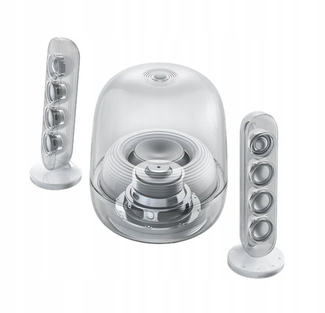Трехполосный динамик SoundSticks 5 обеспечивает детальный и чистый стереозвук. Направленный вниз сабвуфер обеспечивает мощный и точный бас. Два шелковых высокочастотных динамика и среднечастотный динамик обеспечивают идеальное воспроизведение вокала и инструментов.