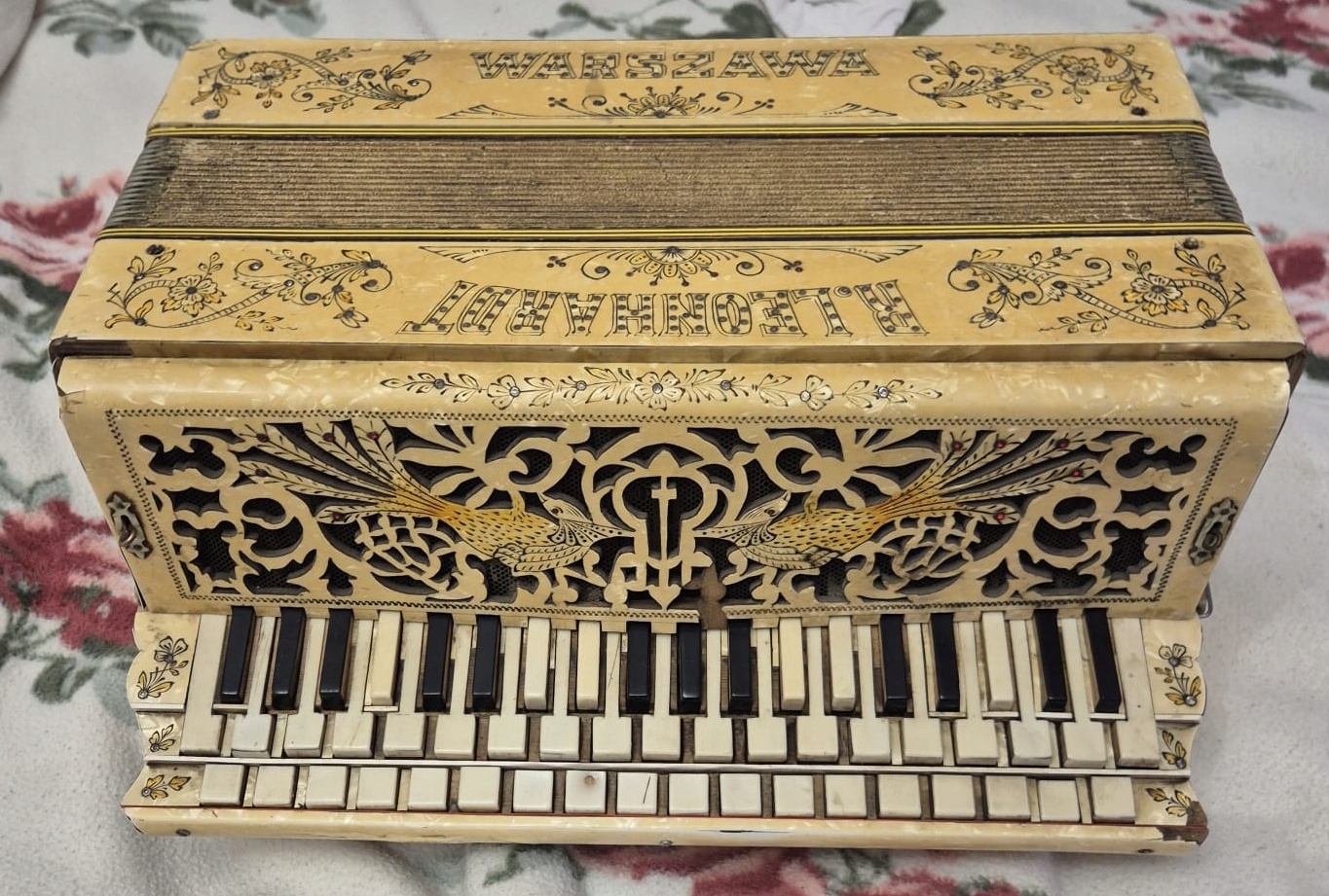 Здравствуйте, продаю антикварный инструмент Harmonia, аккордеон R.LEONHARDT ВАРШАВА, педалей у меня нет