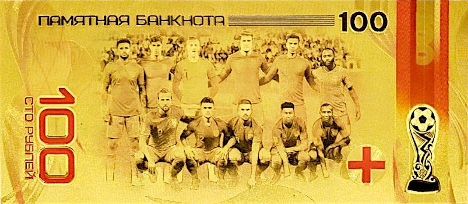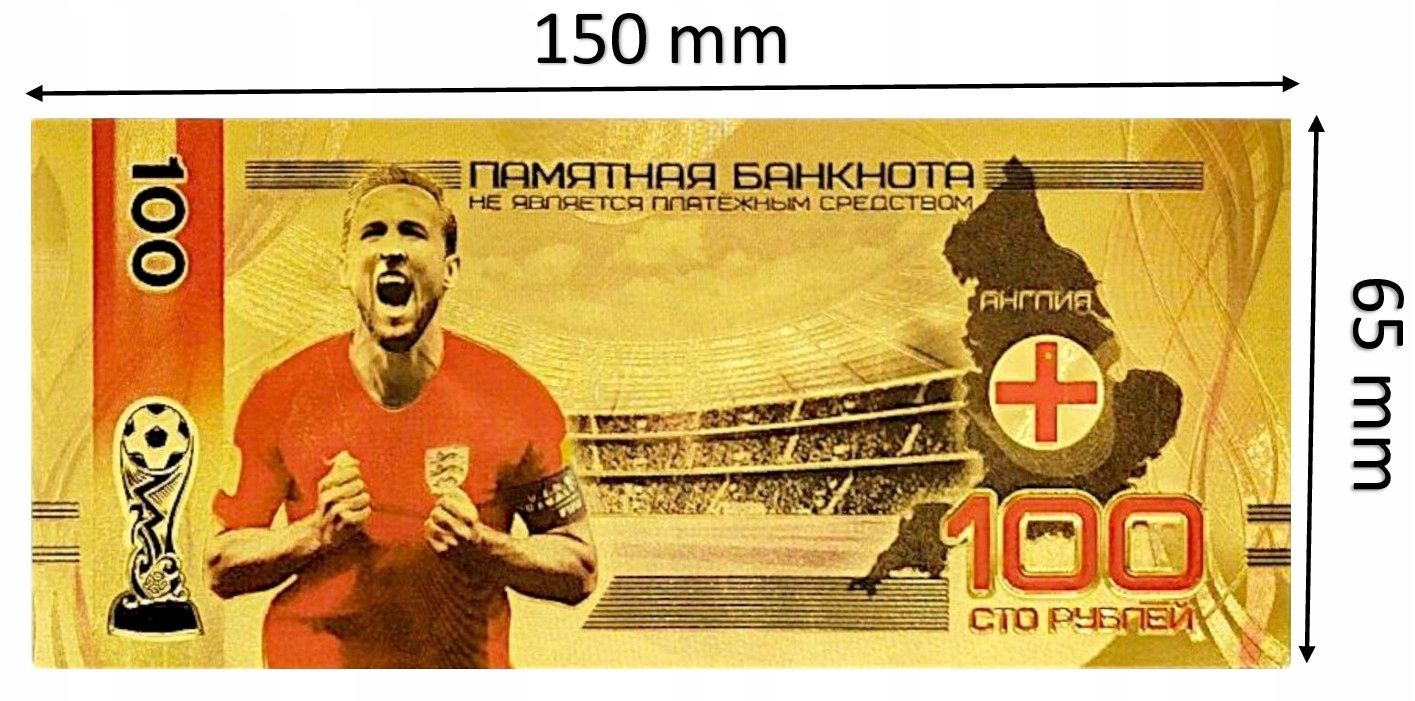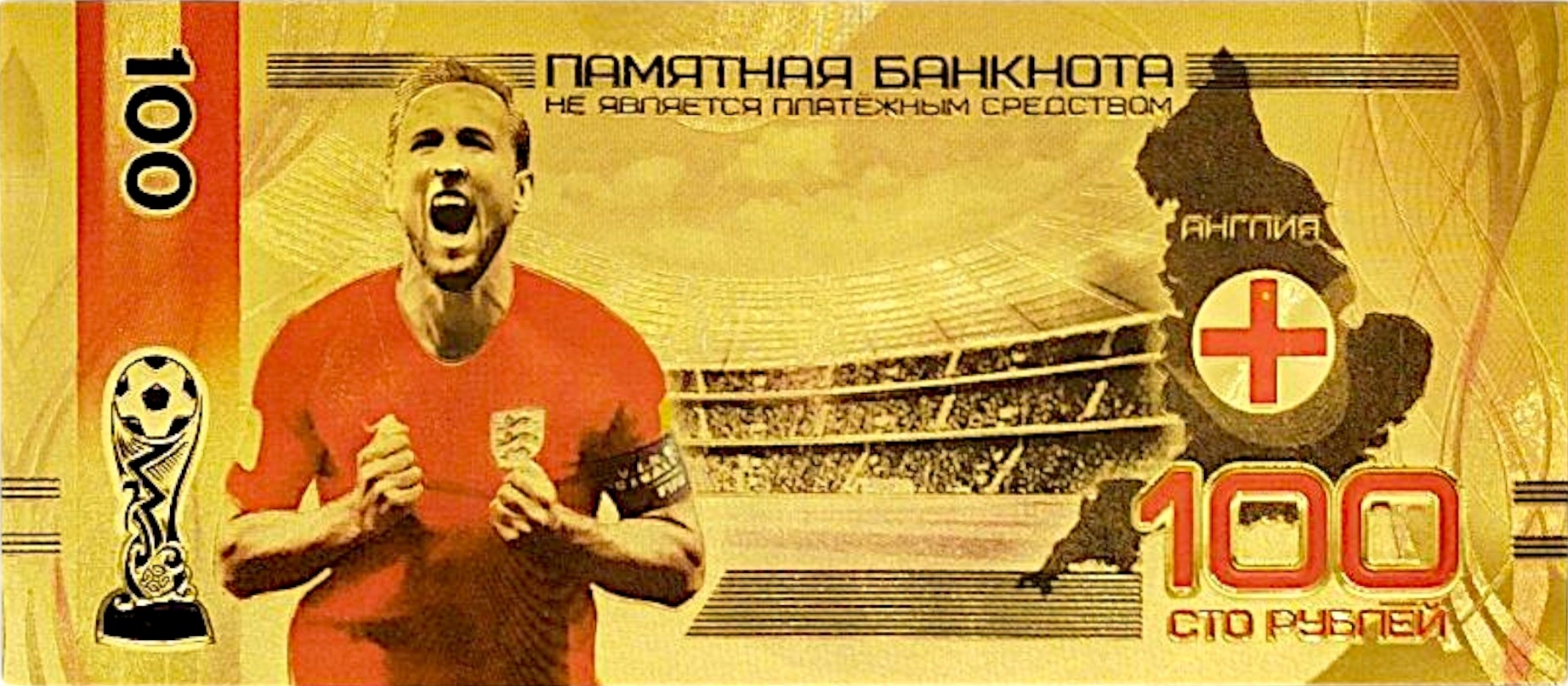 Позолоченная банкнота из ПВХ «Гарри Кейн» с изображением Кубка мира 2018