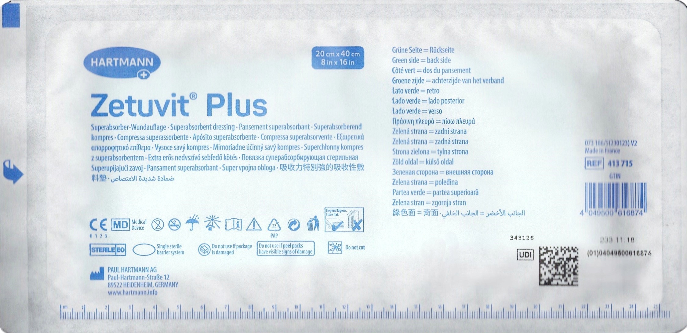 hartmann - 413 715 - Zetuvit Plus - 20 x 40 см - 1 ПК хронический.