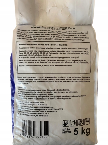 Extracote super NPK — это удобрение со 100% оболочкой, содержащее полный пакет макро- и микроэлементов.