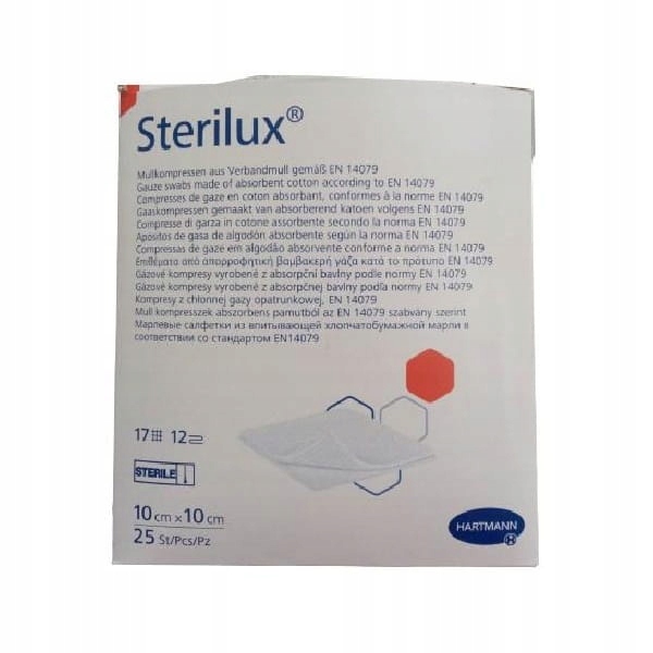 hartmann | Sterilux Es Compress of Idle Make 17 потоков 12 слоев 10 см x 10 см | 25 кусочков P> Характеристики: - Складывались в системе ES - они дополнительно свернули края, что дополнительно защищает от снимков отдельных потоков; > Дружелюбный для кожи, он не содержит аллергенов, они соответствуют требованиям EN 14079; Использование хлора; Продукт имеет сертификат CE 0123 Информация, содержащаяся на упаковке, находится в польском. > EAN CODE: 4049500490269