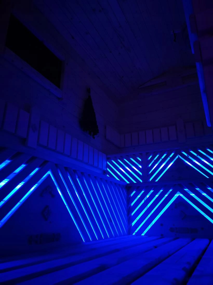 Независимое сенсорное управление RGB-освещением в сауне и раздевалке.
