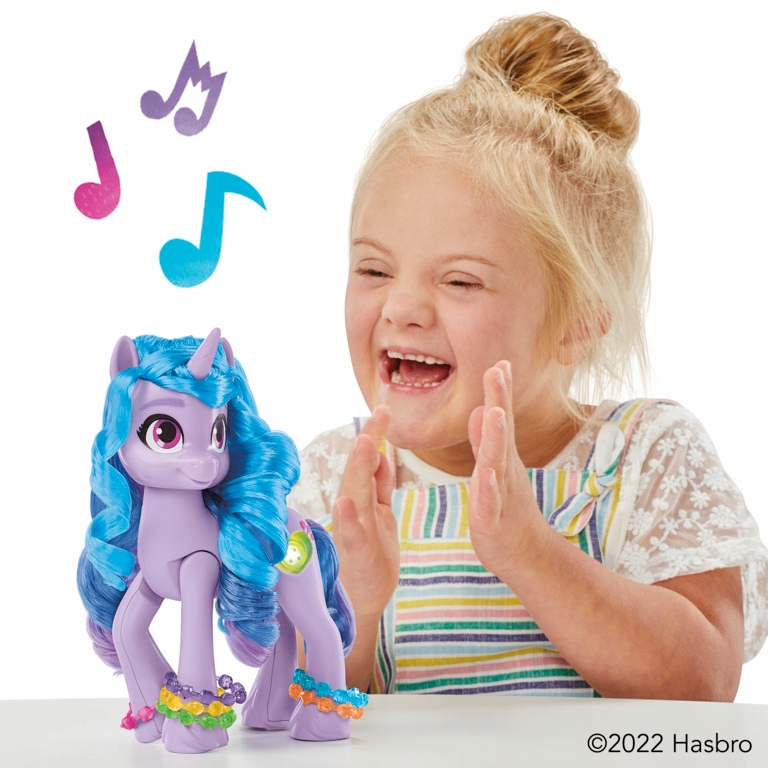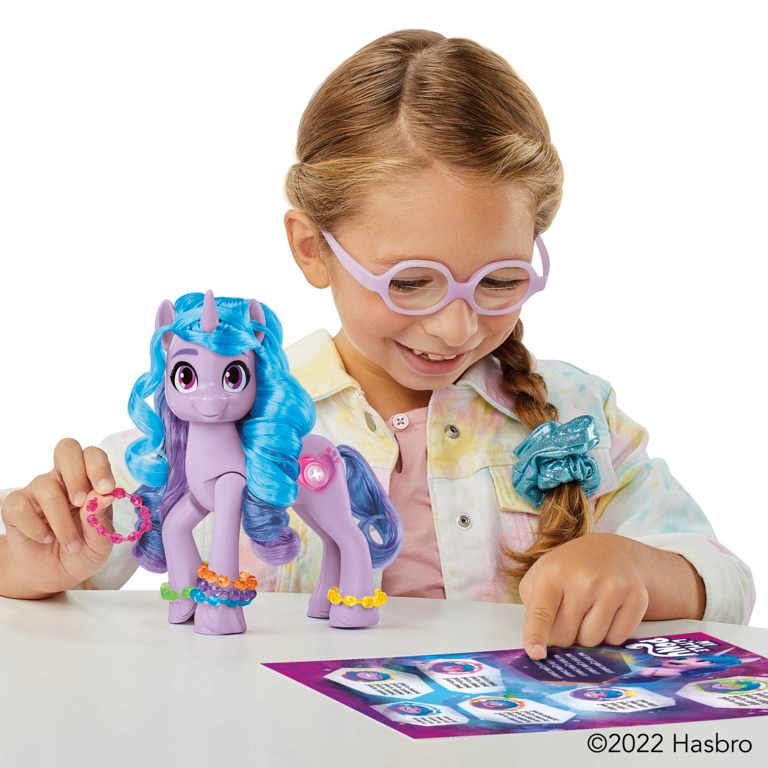 Откройте для себя волшебство единорогов с фигуркой Иззи высотой 15 см со световыми эффектами, звуками и музыкой! Нажмите Cutie Mark, чтобы услышать музыку из My Little Pony: Следующее поколение. В комплект входят носимые аксессуары для Иззи и детей (6 разноцветных браслетов дружбы) и расческа для расчесывания красивых волос единорога.