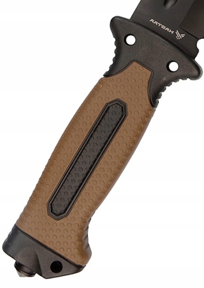 Тактический нож имеет небольшую гарду, которая эффективно защищает руку от соскальзывания к режущей кромке.
