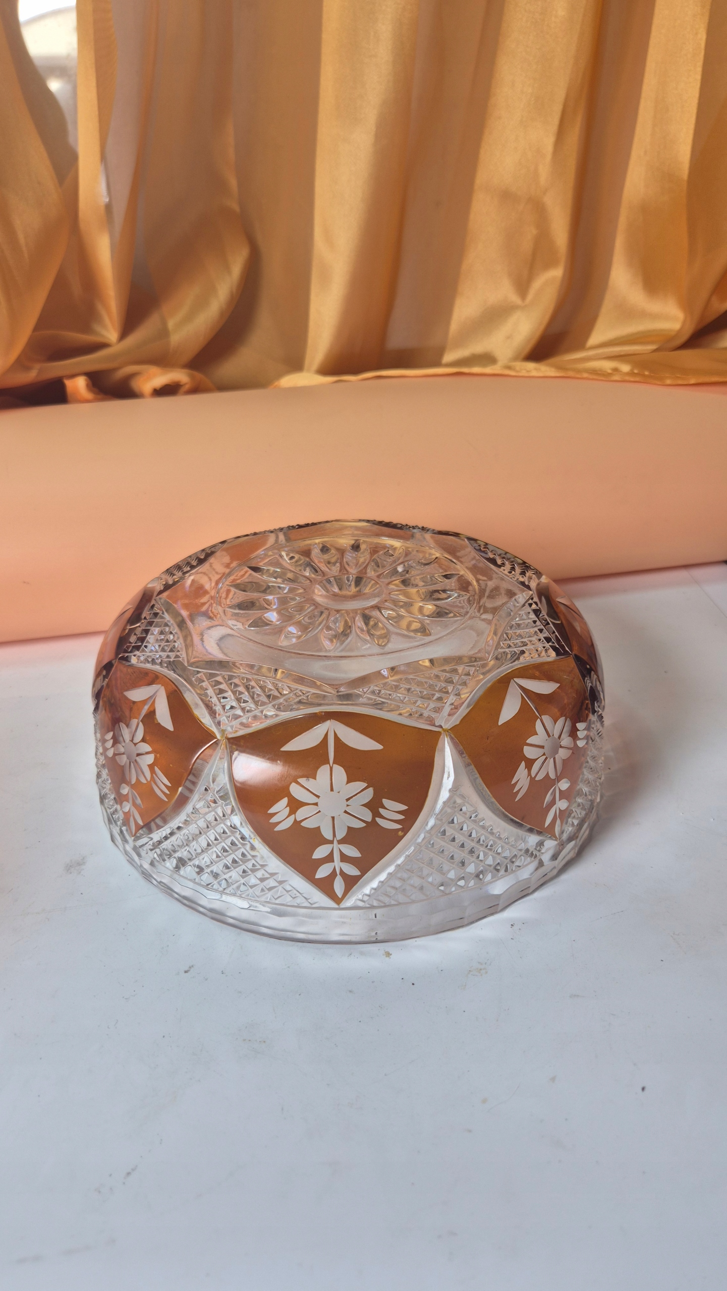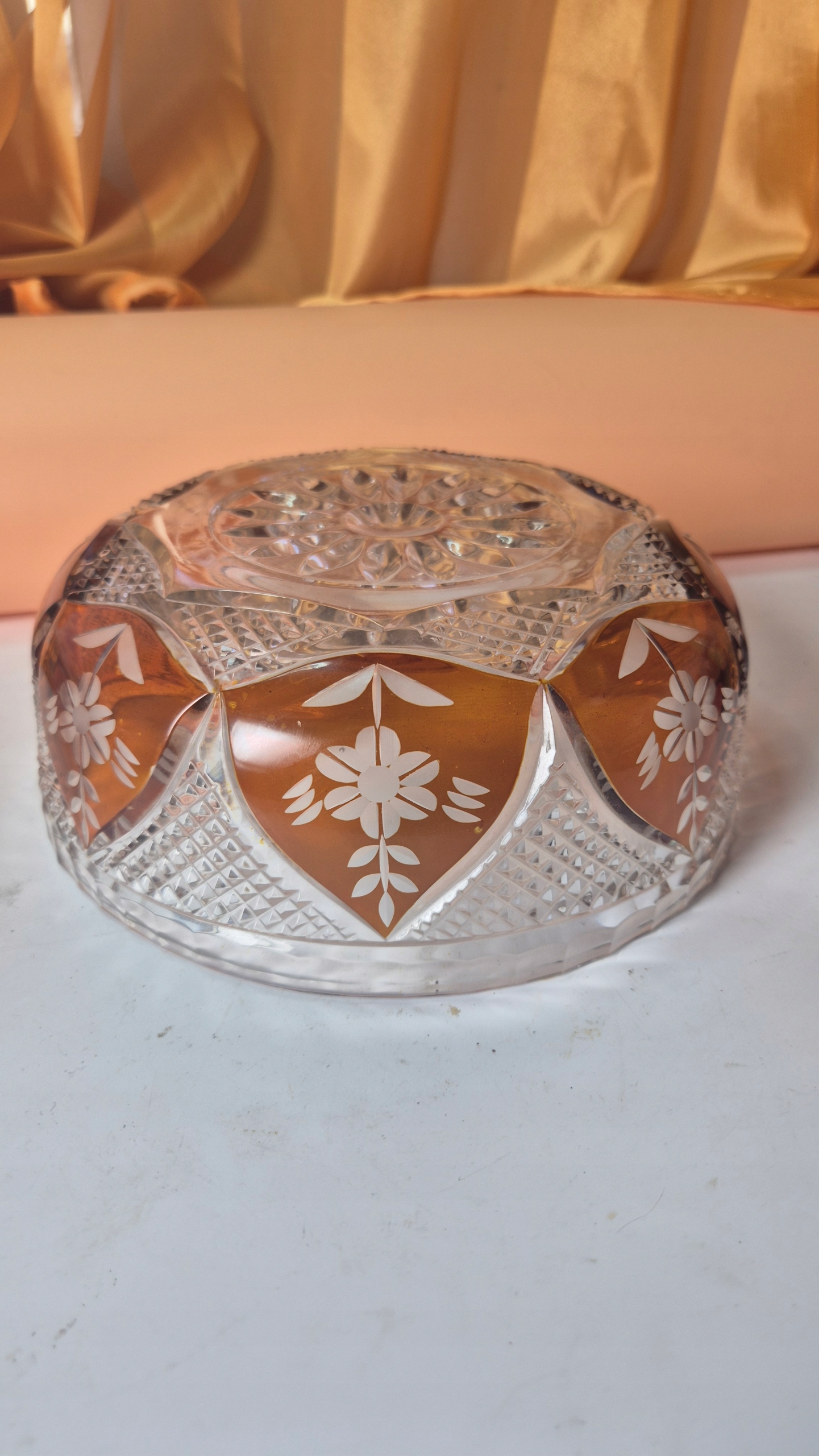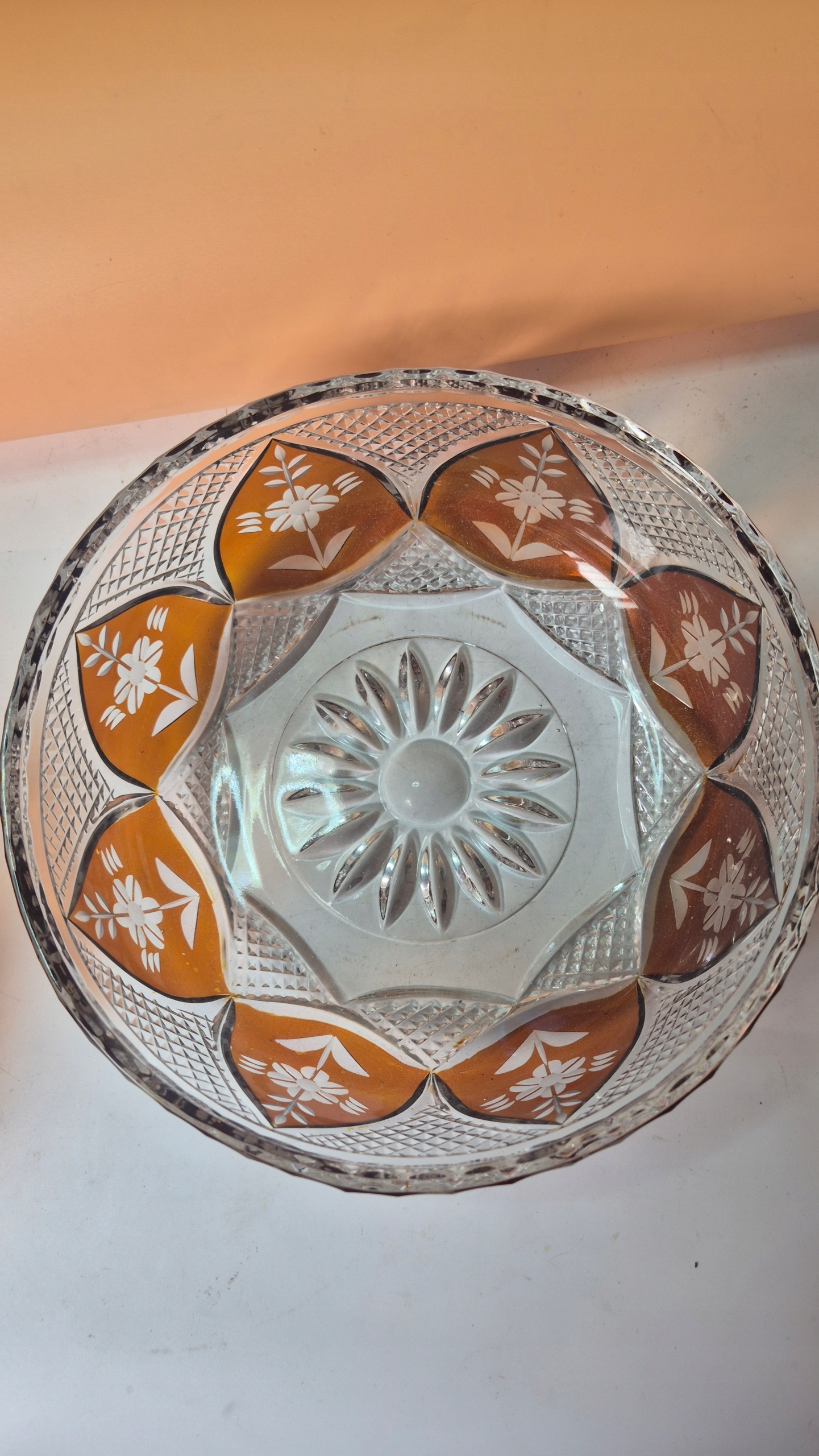 Красивая старинная хрустальная красочная салатница от стекольного завода «Лаура»