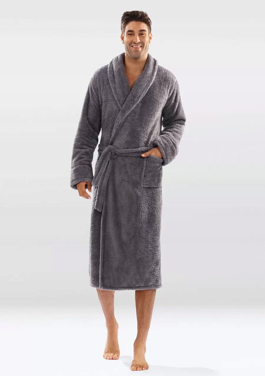 Не только женщинам нужно подходящее нижнее белье, чтобы чувствовать себя комфортно и привлекательно. В нашем предложении также есть мужские халаты из очень приятного и мягкого плюша. К домашнему халату прикреплен пояс, благодаря которому можно плотно прикрыться, а боковые карманы позволяют хранить мелкие вещи или согревать руки. Широкий воротник сделает ношение халата еще приятнее. Если вы ищете теплое мужское домашнее пальто из качественного материала, эта модель подойдет идеально! Он доступен во многих цветах — черном, коричневом, темно-синем и экрю, а также в более счастливых, таких как фиолетовый или синий. Подарите себе немного комфорта, купив красивый мужской халат по очень привлекательной цене. Как стирать и гладить? Стирать этот материал лучше всего вручную при температуре 30°С. Пожалуйста, не хлорируйте, не подвергайте химчистке и не отжимайте. Гладить при 110°С. Состав материала: 100% полиэстер.
