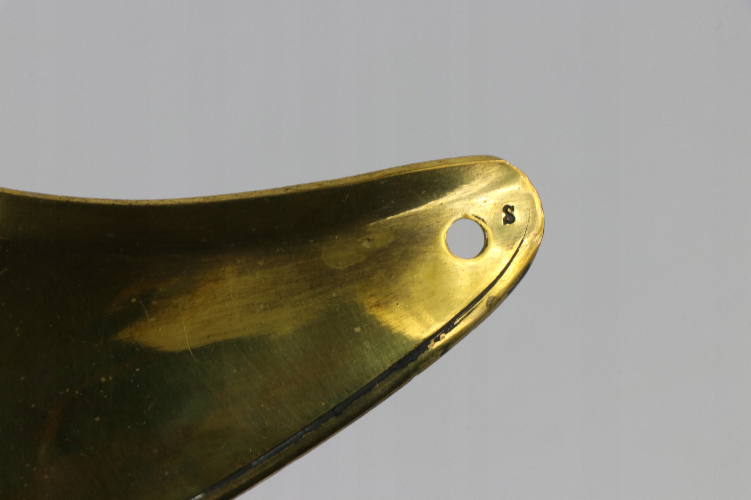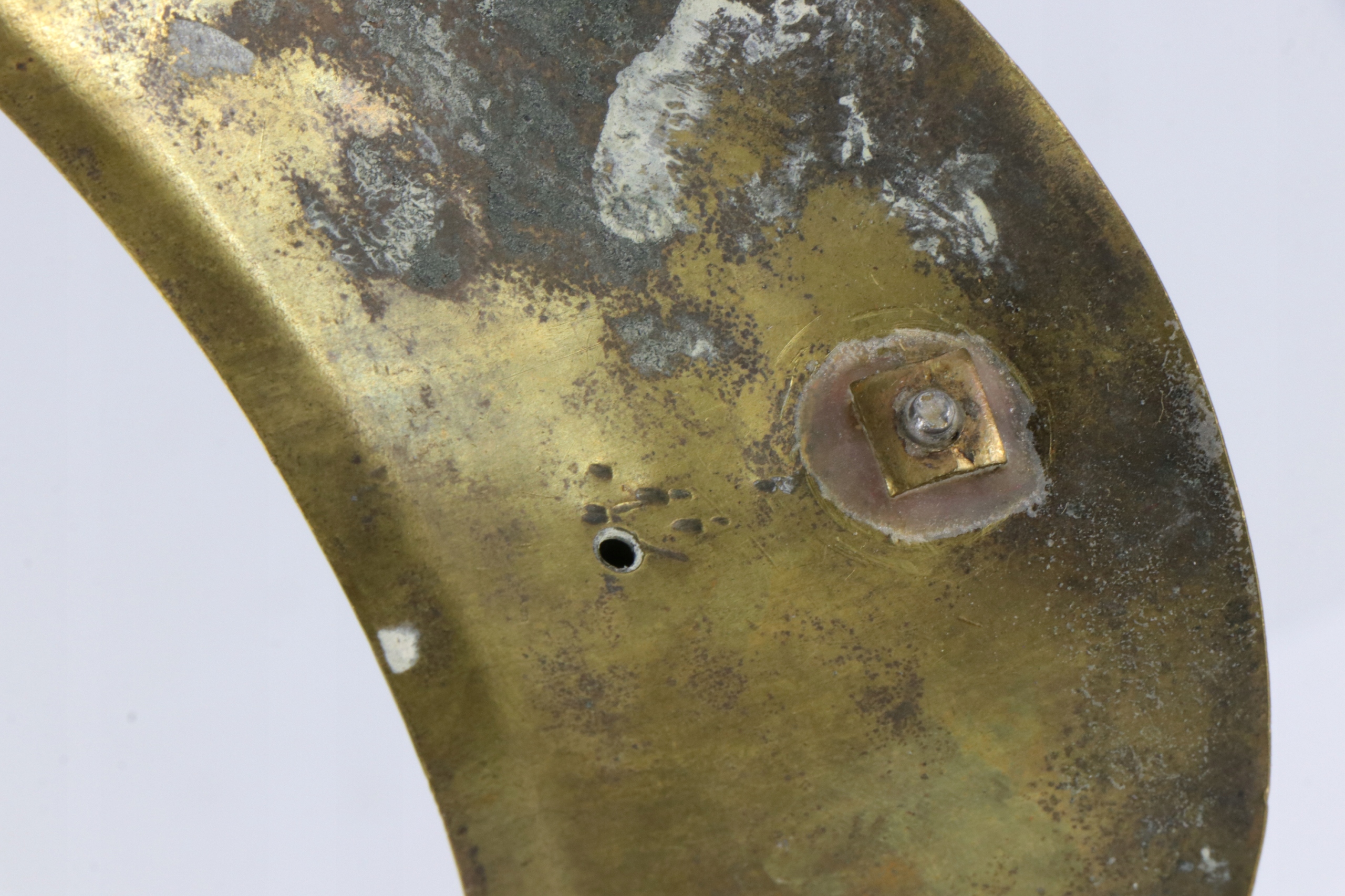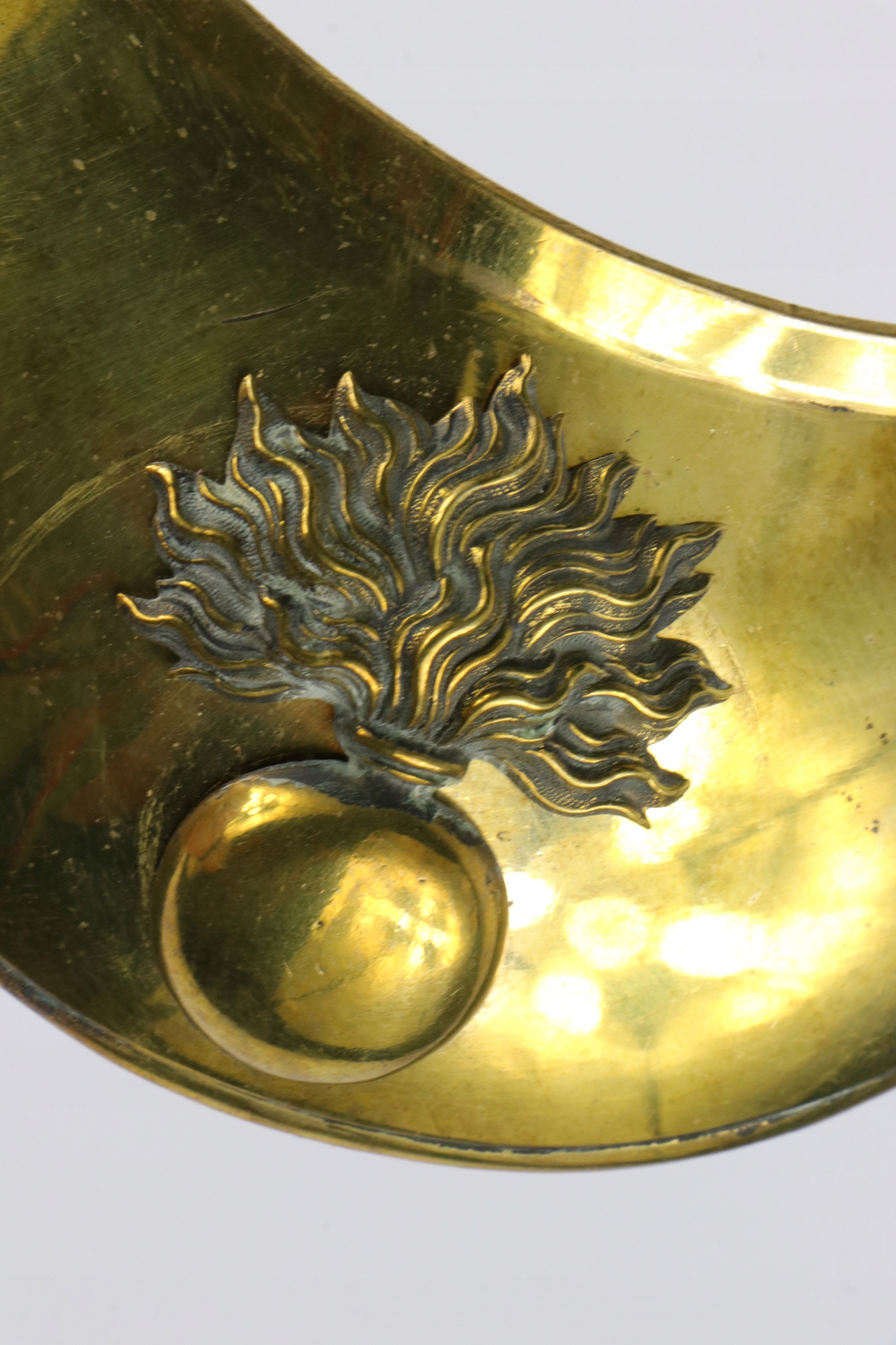 Французский горжет гренадерского офицера. Аппликация из латуни, размещенная на латунной пластине. Сбоку можно увидеть знак S