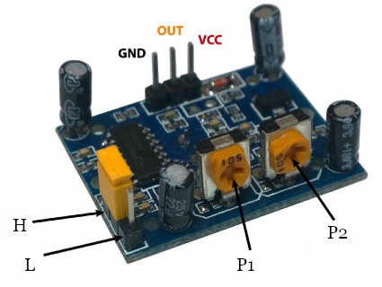 - L - перемычка в положении L. После при обнаружении объекта выходной сигнал становится высоким только один раз, а затем переходит в низкое состояние независимо от того, продолжается ли движение,