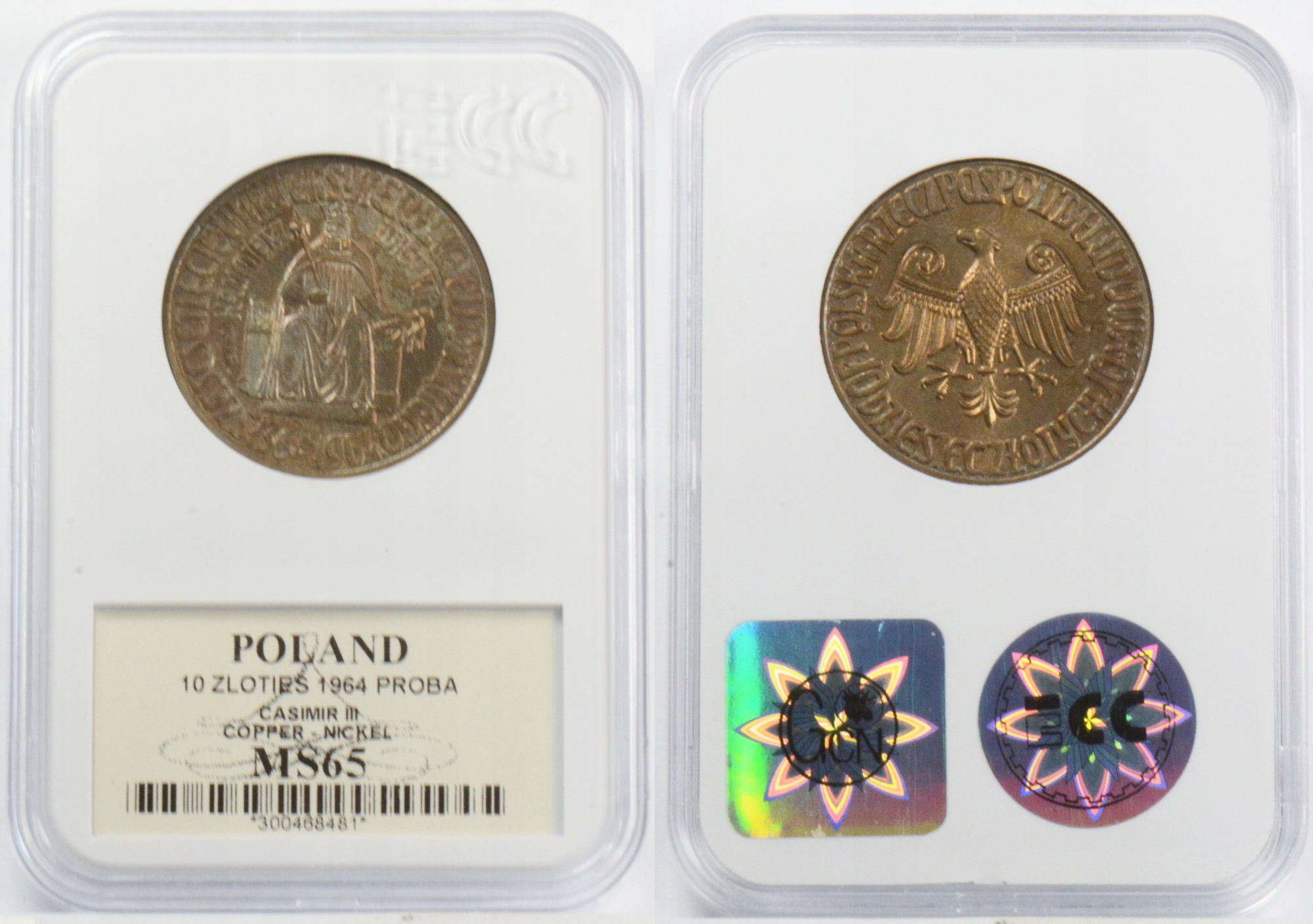 HC. 10 Zlotys 1964 Попытка Kazimierz Wielki MS65 27.08