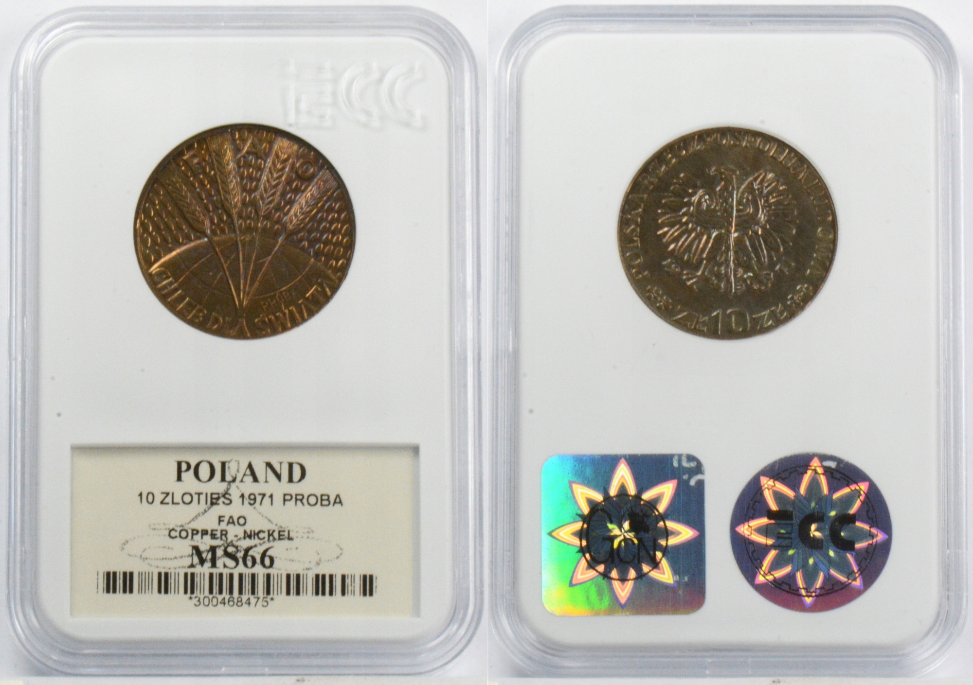 HC. 10 Zlotys 1971 FAO MS66 27.08