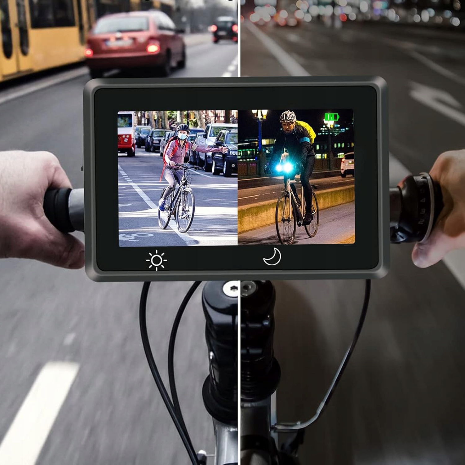 Велосипедные камеры в зеркалах предлагают более широкое поле зрения, чем традиционные велосипедные зеркала. Угол обзора 110 °, эффективно покрывая мертвые точки. Он также имеет сильную функцию ночного вида, чтобы обеспечить безопасное вождение ночью.