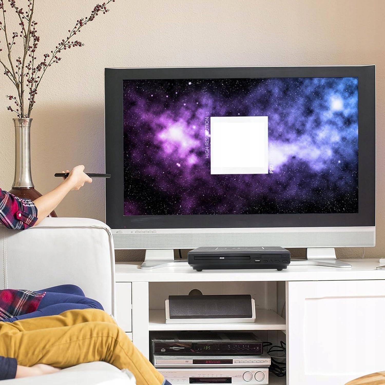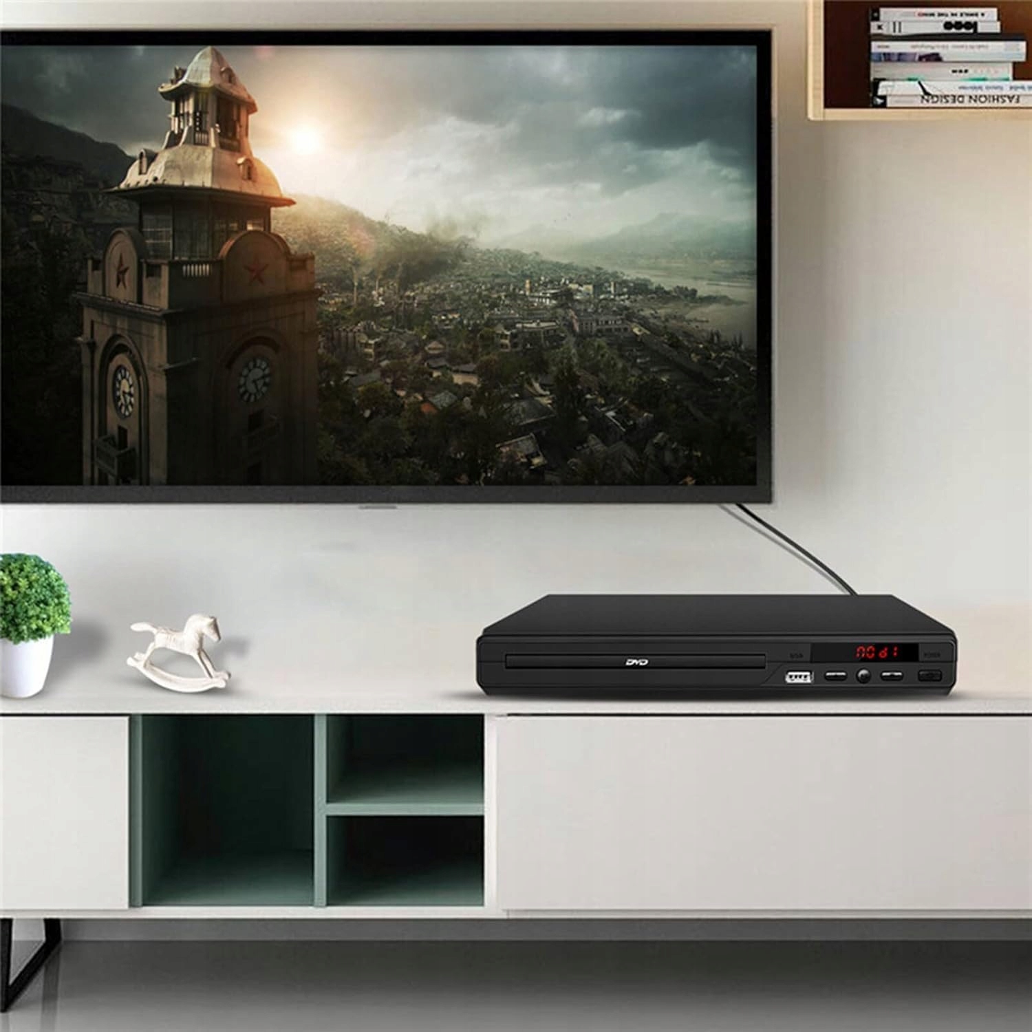 -i -Это мощное и поддерживает не только DVD -диски, но и CD и USB и может воспроизводить музыку, фотографии и видео.
