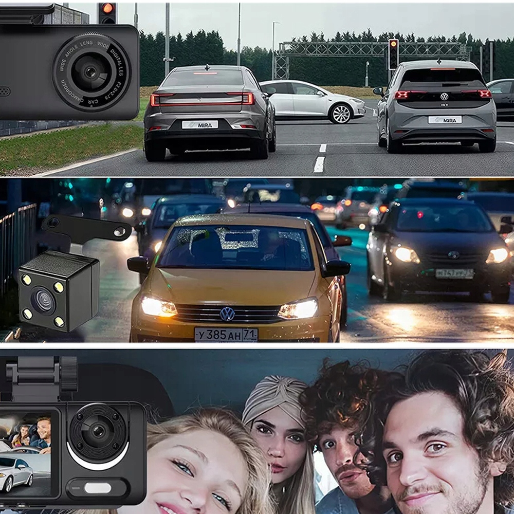 HD Car Camera на передней и задней автомобильной регистраторе 3 объектива