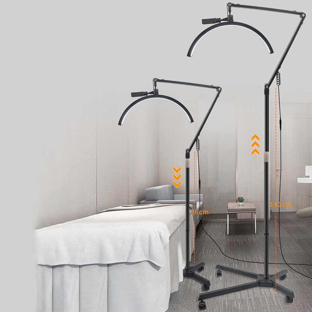 【Напольный заполняющий светильник в форме полумесяца】 Этот светильник, имеющий характерную форму полумесяца, включает в себя 238 высококачественных ламповых бусин, высоких мощность 36 Вт и высокий индекс цветопередачи более 90, что идеально подходит для настольных видеоблогов, прямых трансляций из салонов красоты, косметических проектов и многого другого.