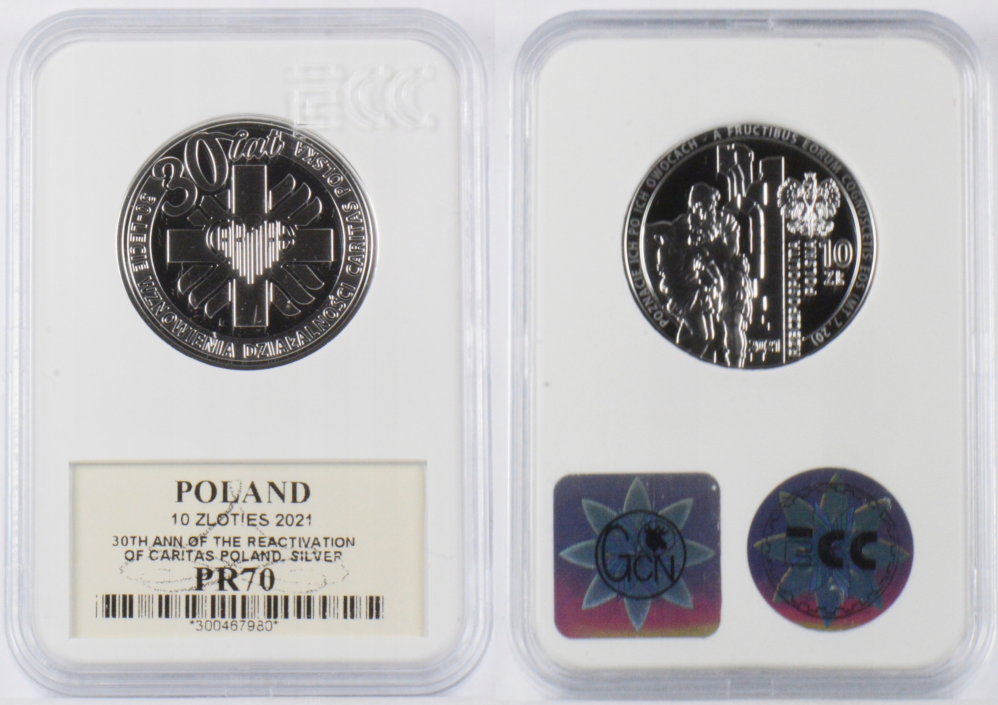 HD 10 Zlotys 2021 30 лет Caritas PR70 28,07