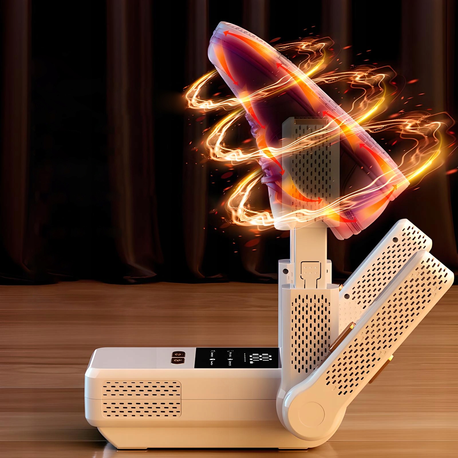 ✅ Двойной воздушный поток: регулируемые вентиляционные отверстия подходят для всех размеров обуви и выдвигают 支架 позволяют высушить два пир одновременно!