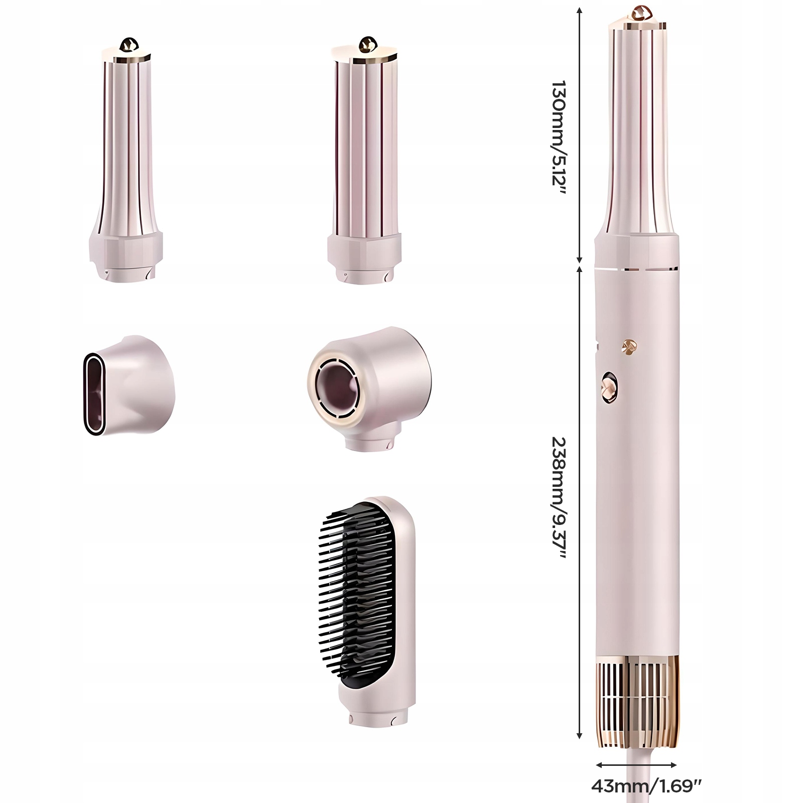 Измените свою прическу с помощью стайлера HDeye 5 в 1! Это инновационное устройство сочетает в себе скоростную сушилку, щетку для выпрямления, расческу для объема, насадку для завивки и концентратор для достижения результатов салонного качества в домашних условиях. Бесщеточный двигатель со скоростью 110 000 об/мин обеспечивает скорость ветра 20,3 м/с и сушит волосы в 3 раза быстрее, а 6,5 миллиардов отрицательных ионов уменьшают пушистость и придают блеск.