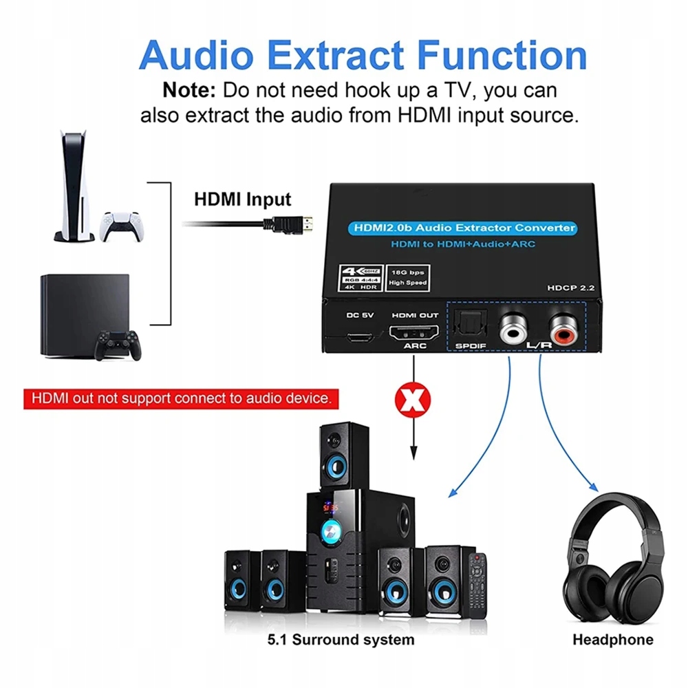 1. Совместимый с HDMI Audio Extractor 4K @ 60 Гц】 аудио преобразователь, совместимый с HDMI, позволяет подключить источник HD к одному HD -дисплею и добавляет дополнительные L R и SPDIF, а также 3.5 Audio Port 3.5. Достигает синхронизации разделения звукового сигнала.
