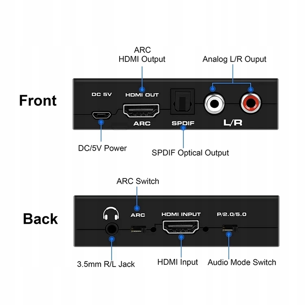 * Преобразование одного ввода в линии с HDMI для одного совместимого вывода с Audio HDMI (ARC) (SPDIF R/L 3.5) Поддерживает HDR 10 Dolby Vision и Dolby Atmos