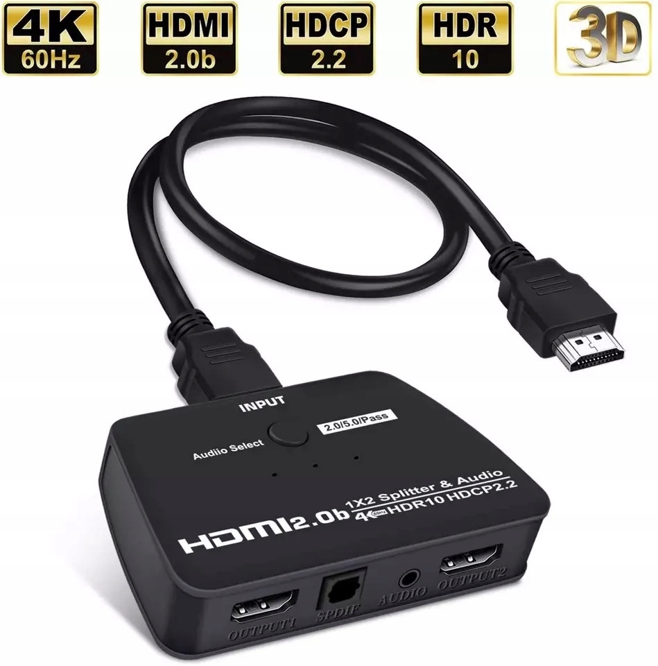 HDMI СПЛІТТЕР 1x2 HDCP 2.2 4K / 60 АУДІО ЕКСТРАКТОР
