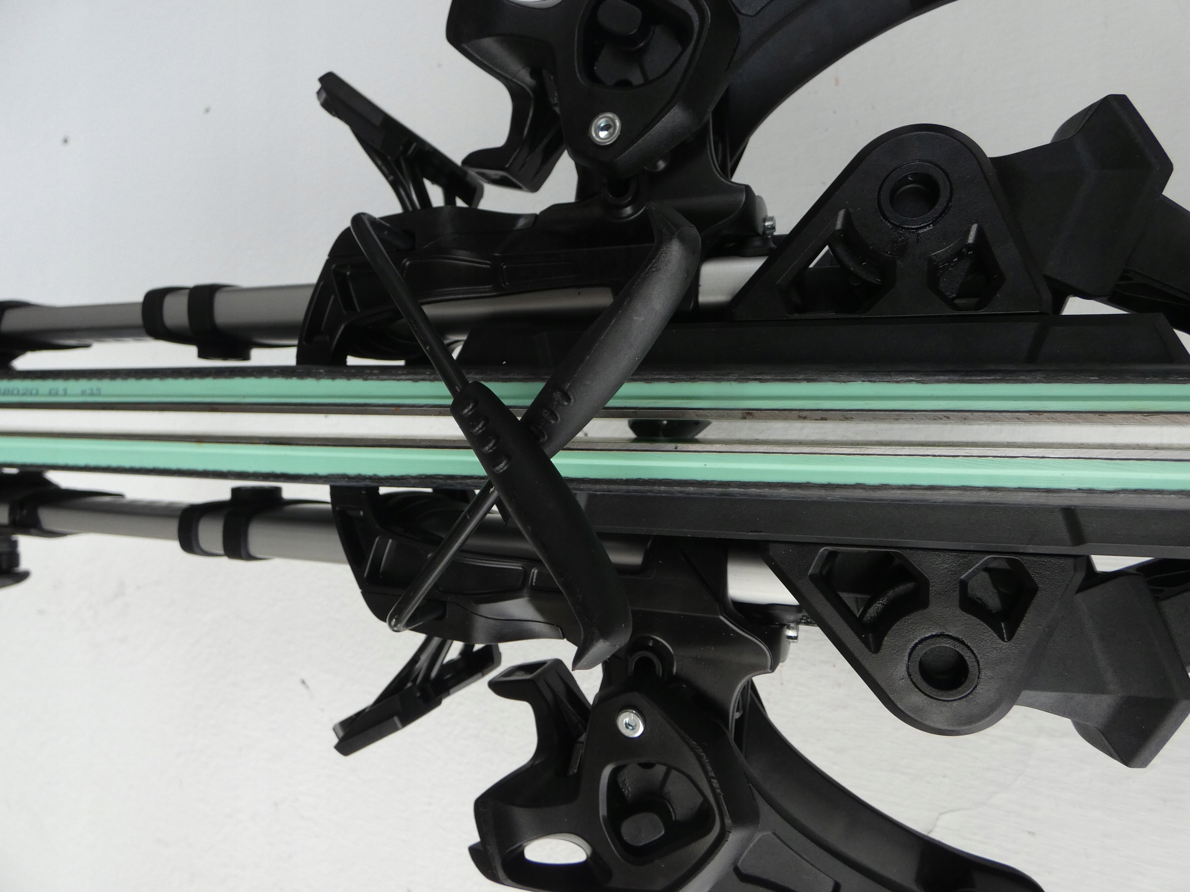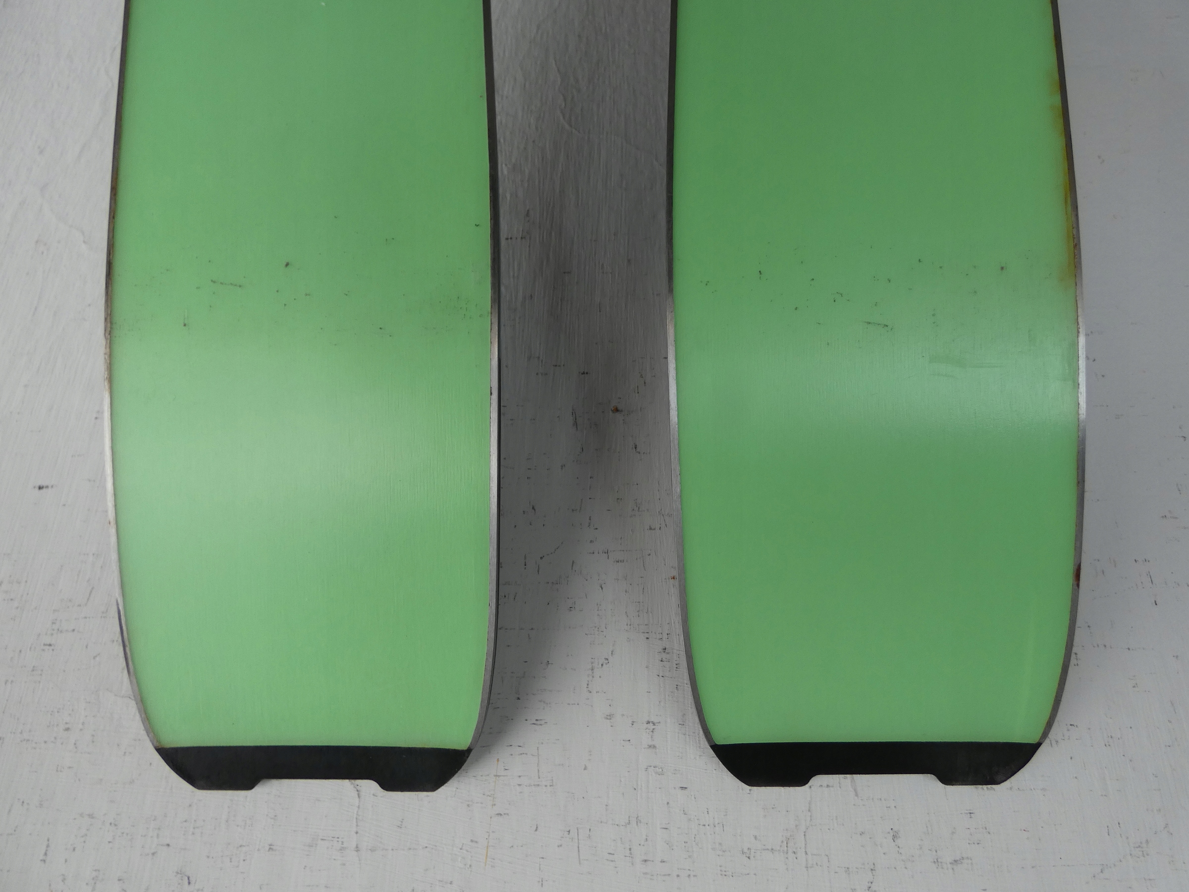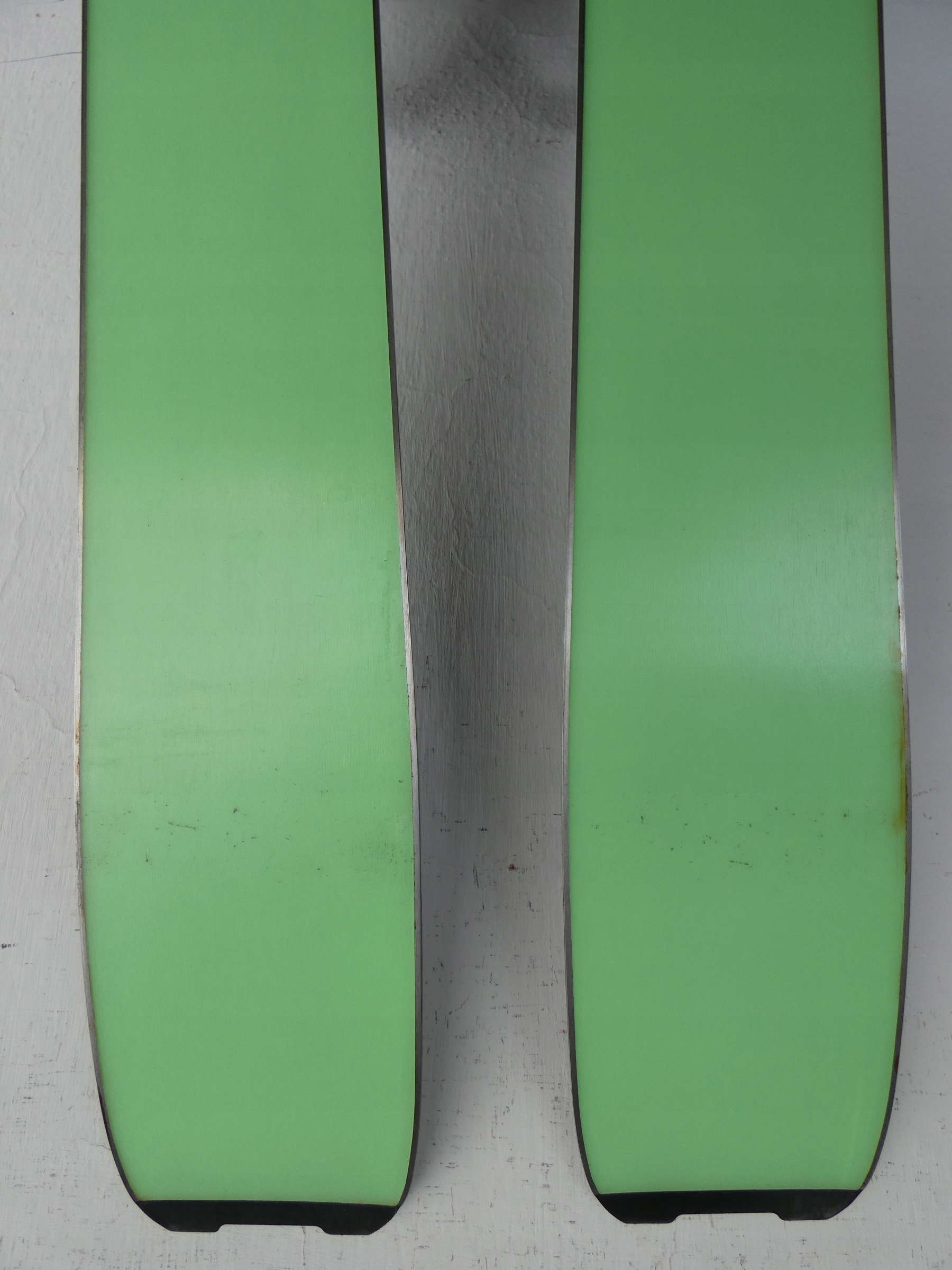 Минимальные единичные следы эксплуатации – мелкие царапины на графическом оформлении лыж и креплений.