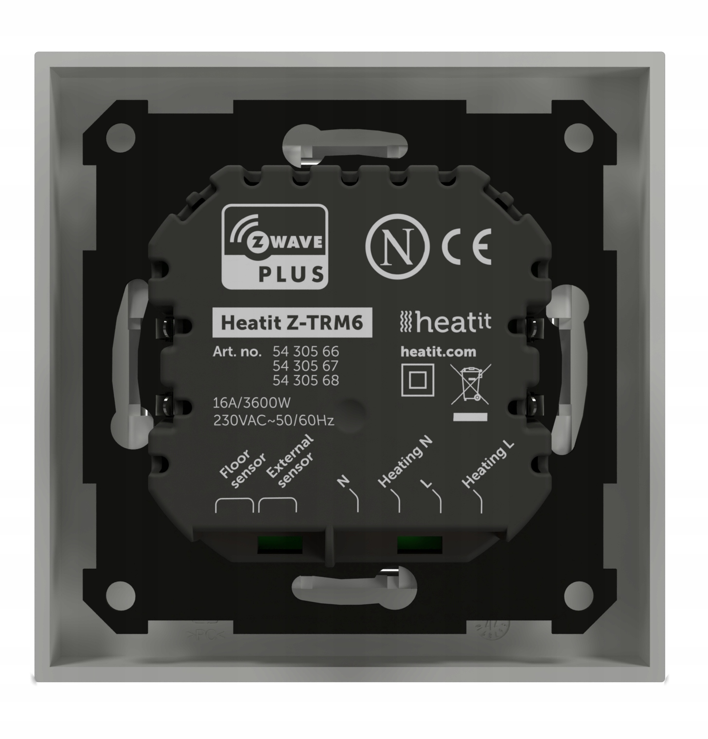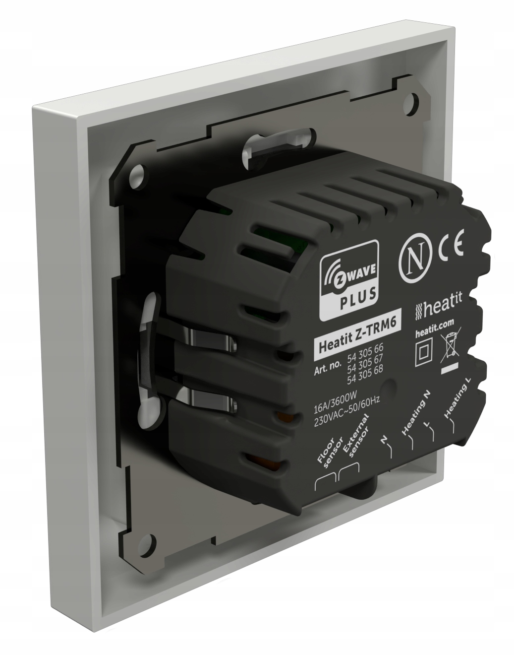 имеет твердую металлическую раму для безопасного крепления на соединении. Термостат имеет один встроенный датчик комнатной температуры. Вы также можете подключить два дополнительных внешних датчика температуры. Heatit Z-Trm6 имеет активное измерение мощности и предоставляет информацию о потреблении энергии в реальном времени. Это также позволяет ручную настройку значения измерения мощности в случае соединения с контактором. Продукт имеет внедренную технологию Zerox. Эта технология гарантирует, что реле переключается на 0 В при включении и выключении.