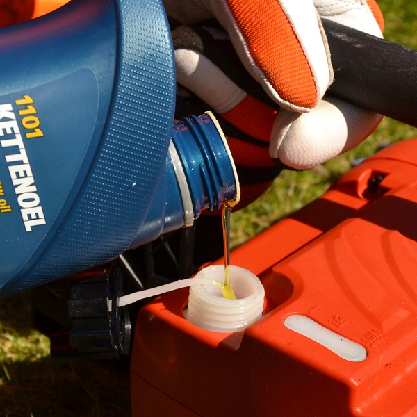 Цепь и руководство автоматически смазываются с помощью насоса в баке, интегрированной непосредственно с пилой. Уровень масла можно легко проверить на баке с прозрачным видом.