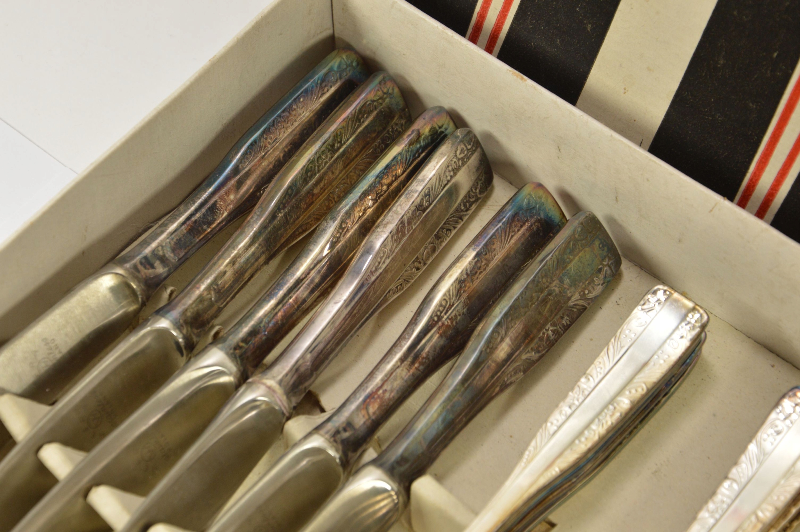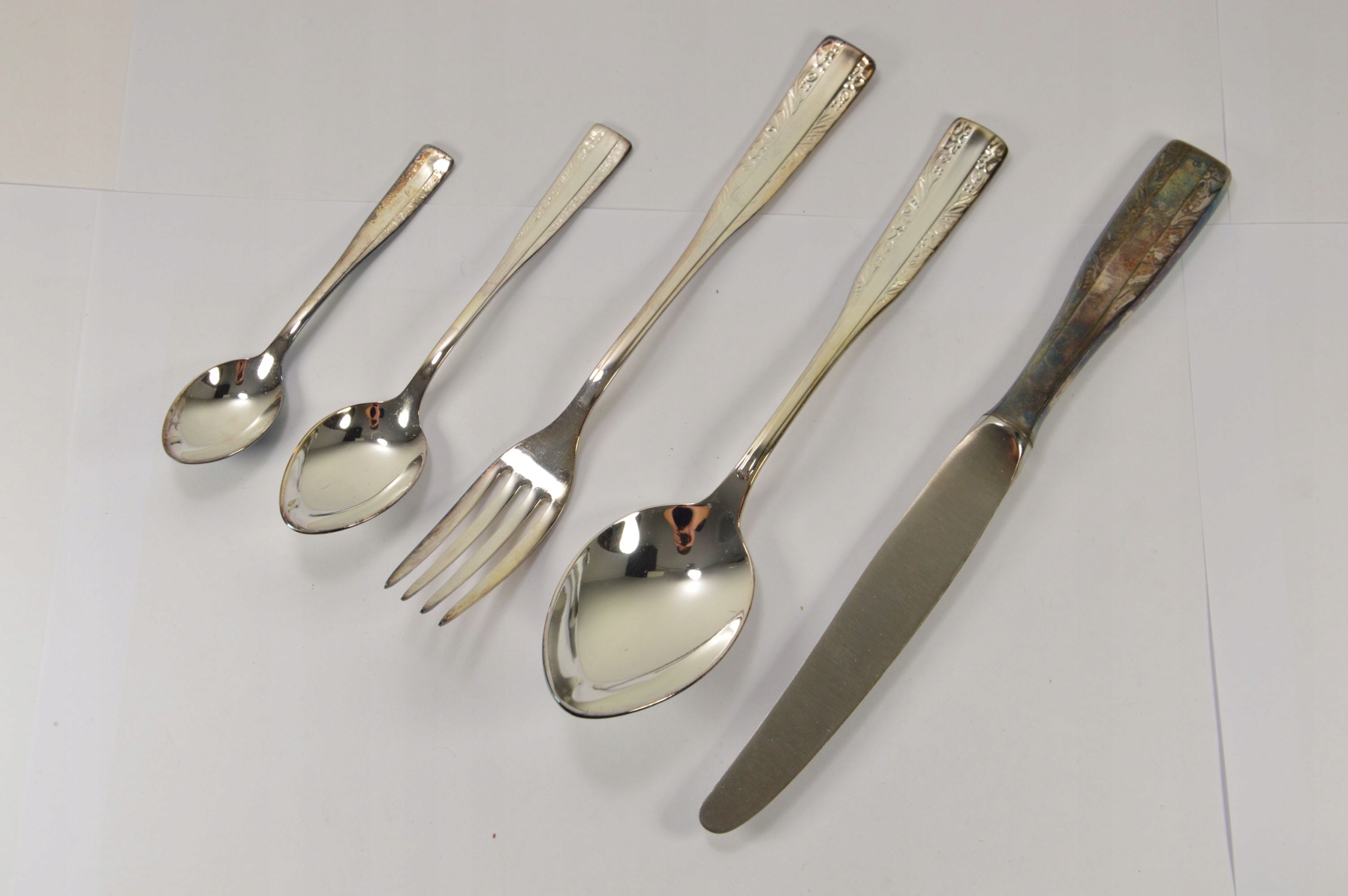 Размеры: длина. ложки 19 см, ножи 21,5 см, вилки 19 см, чайные ложки 14 см, ложки мокко 11 см.