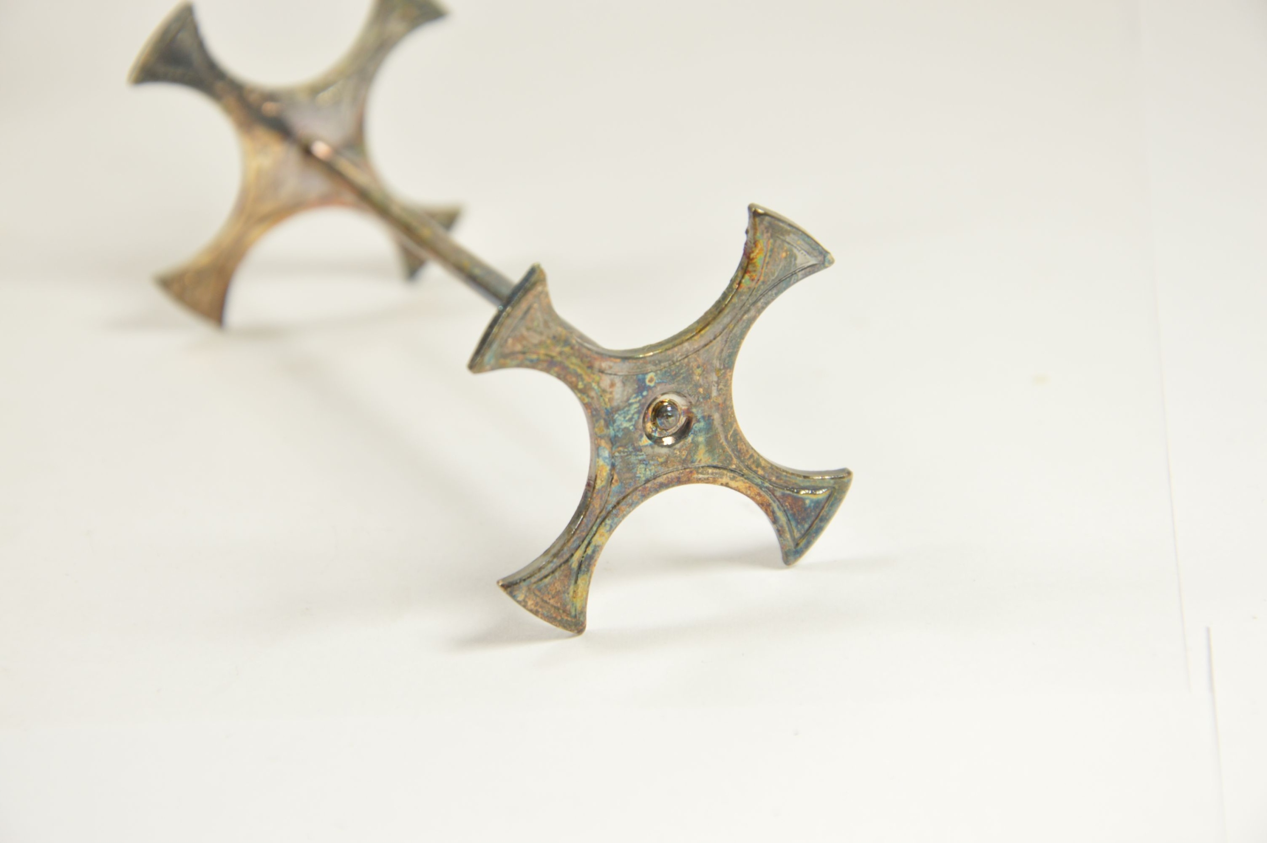 Красивый, оригинальный набор подставок для столовых приборов от Hefra. Подставки прекрасно сохранились, покрыты натуральной патиной, в наборе шесть предметов и футляр.