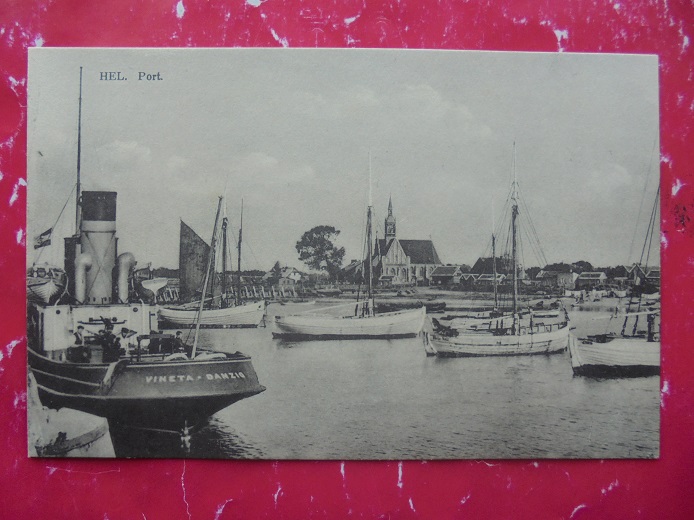 HEL GDYNIA ГДАНЬСК ПОРТ ЛОДКИ ВИНЕТА-ДАНЦИГ КОРАБЛЬ БЕЗ СОСТОЯНИЯ ОБРАЩЕНИЯ НА ИЗОБРАЖЕНИИ КРАСИВАЯ ОТКРЫТКА ИЗ ЭПОХЫ ВОЗМОЖНОСТЬ ОПЛАТЫ ТРАДИЦИОННЫМ ТРАНСФЕРНЫМ БАНКОМ SLĄSKI