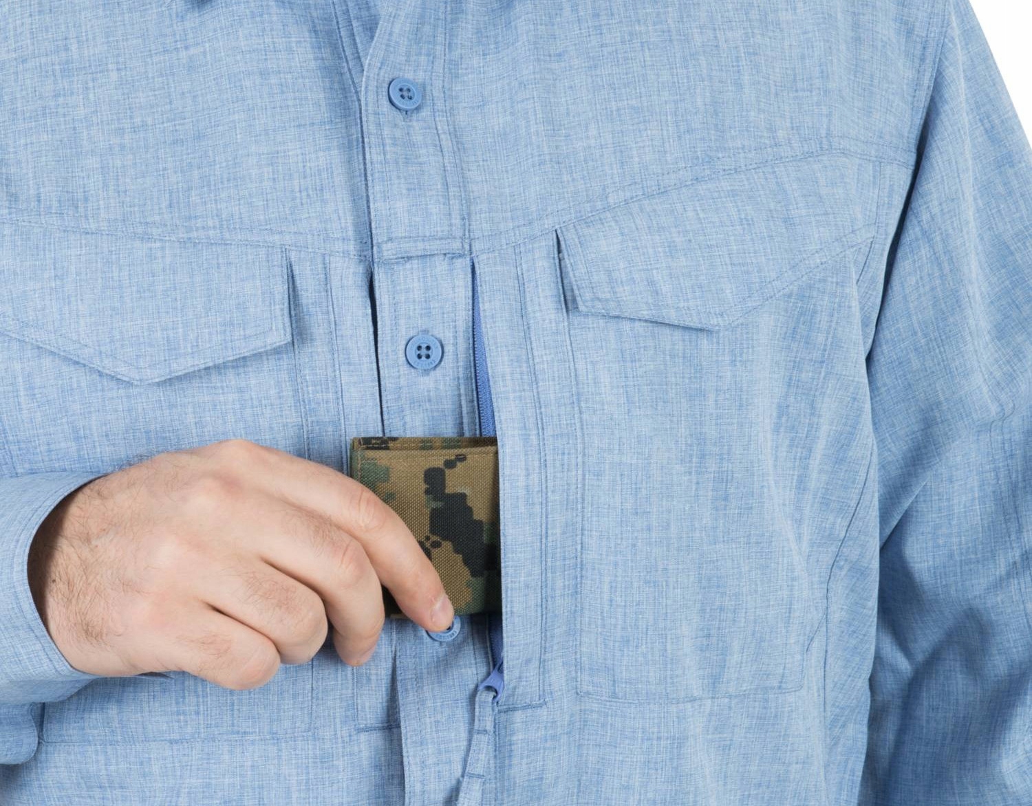 Рубашки в настоящее время являются одним из самых популярных видов одежды, получающим все большее признание не только во время официальных мероприятий, но прежде всего в повседневном использовании. Defender Mk2 Gentleman идеально подойдет к костюму или для повседневного ношения с джинсами. Рубашка изготовлена из легкой, эластичной полиэстеровой ткани. Эта быстросохнущая ткань обеспечивает достаточную воздухопроницаемость, а индекс UPF30 обеспечивает адекватную защиту от УФ-излучения. Покрой Defender Mk2 Gentleman идентичен популярной и оцененной рубашке Defender Mk2. Застегивается на пуговицы с рельефной надписью Helikon-Tex. На уровне груди расположены карманы, застегивающиеся на клапаны на липучке, анатомическое расположение под углом позволяет удобнее извлекать из них вещи. Под ними дополнительные плоские карманы на молниях YKK. Элегантный дизайн рубашки идеально подходит для любого случая, как для гражданских пользователей, так и для офицеров в военной форме. Характеристики изделия: - Прочный, легкий материал - Материал с индексом UPF30, обеспечивающий защиту от УФ-излучения - Анатомический крой - Нескользящий воротник - Петля для очков - Два вертикальных нагрудных кармана с диагональным клапаном, закрывающиеся на липучку - Два кармана Наполеон, закрывающиеся на молнию Технические данные: - Вес: 295 г - Материал: 100% полиэстер - Вес: 128 г/м2 - Цвет: синий меланж(...)