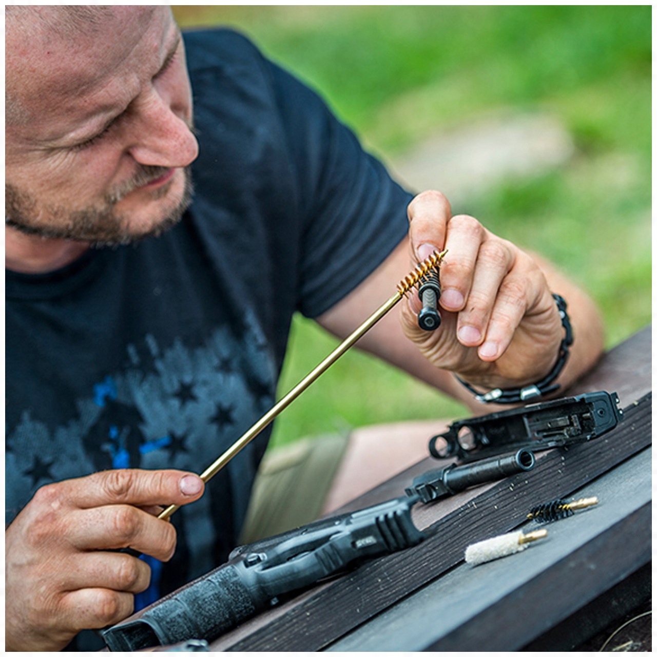 - Нейлоновая щетка для чистки оружия без риска поцарапать поверхность.