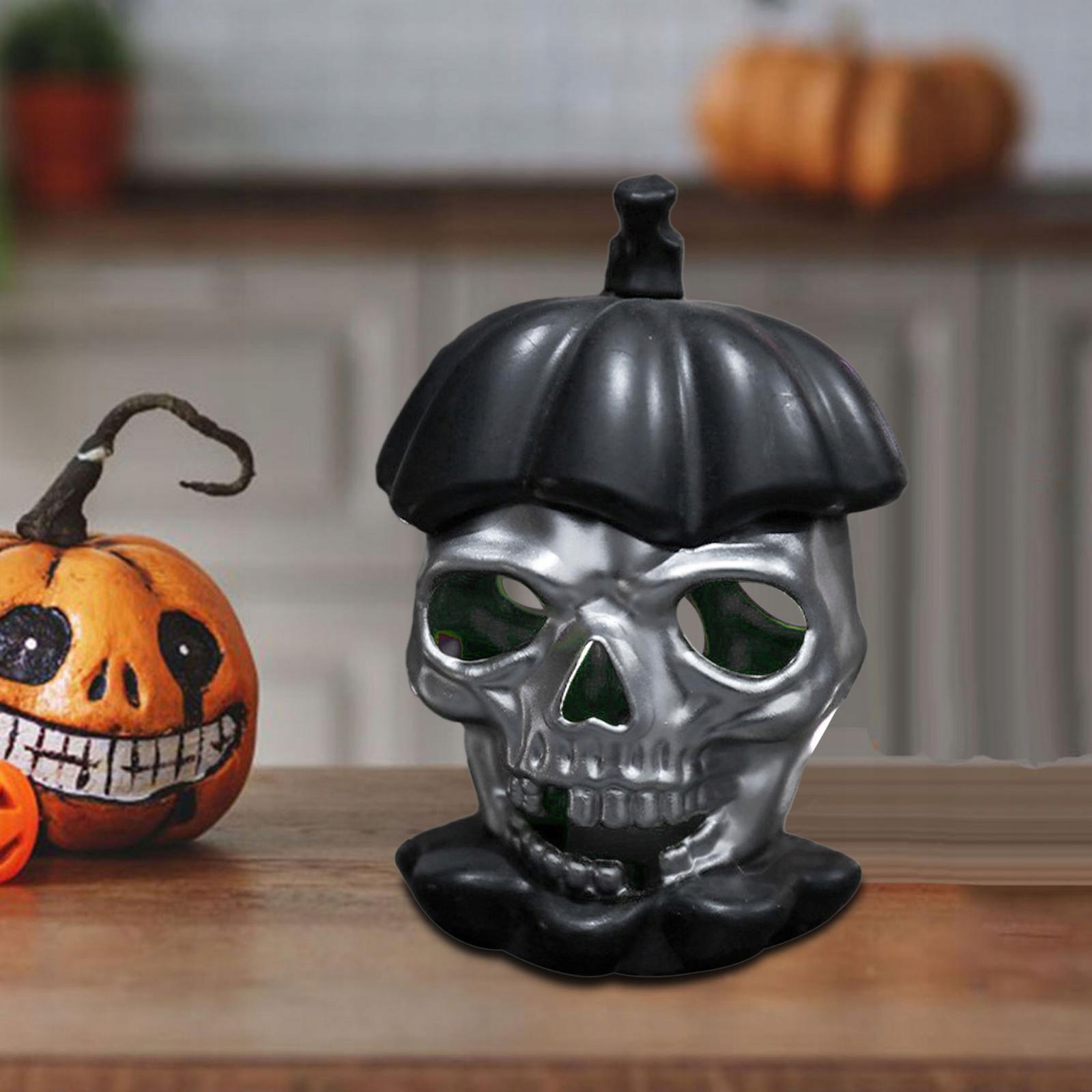 [Украшение на Хэллоуин для улицы и дома]: изысканный фонарь в виде черепа излучает свет через лицо черепа. Источника света достаточно для удовлетворения ваших потребностей. Теплый желтый свет создает праздничную атмосферу. идеальный вариант украшения вечеринок в честь Хэллоуина, дворов, каминов, террас и лужаек.