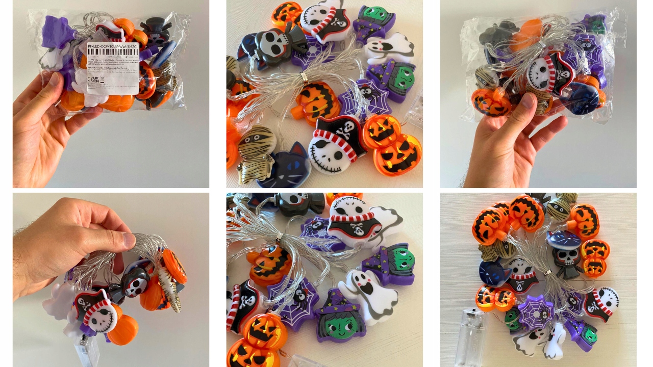 На кабеле они сияют тыквы, призраки, ведьмы, паутину и черные кошки . Это украшения Хэллоуина, которые сразу же вызывают улыбку.